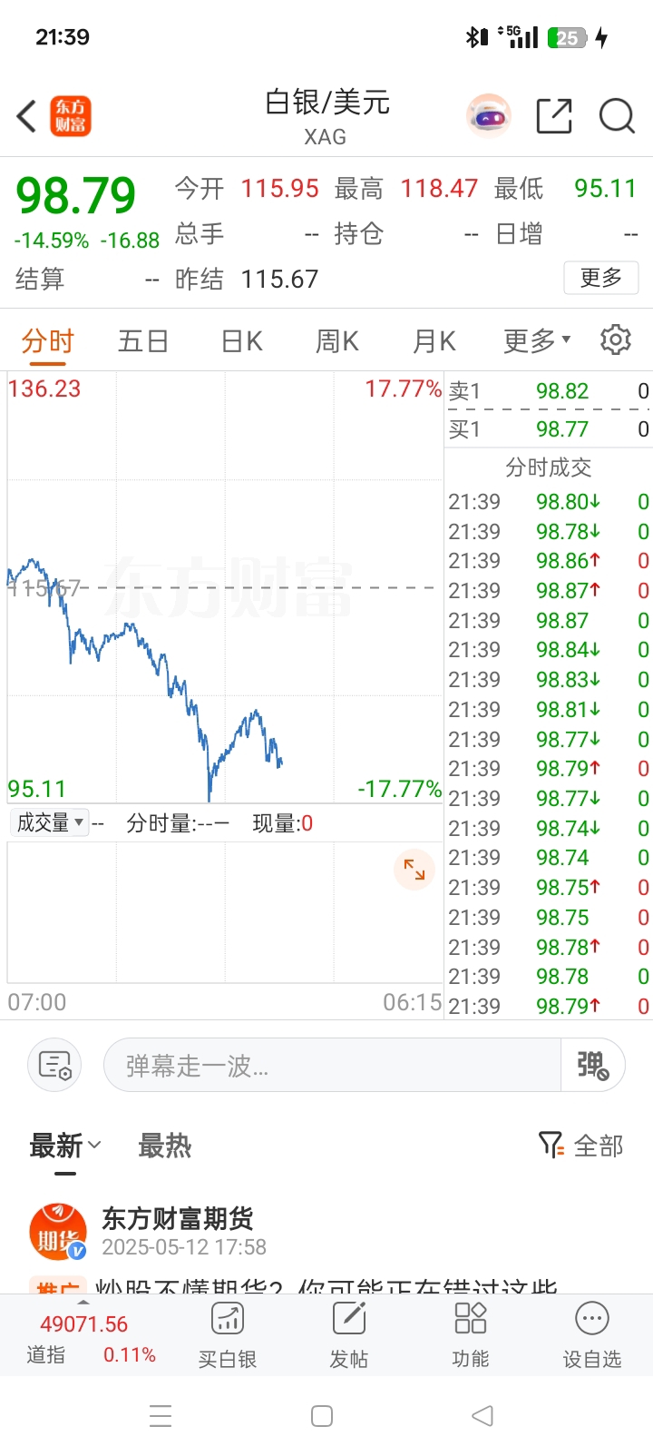 兄弟们有个好消息告诉大家,白银跌破99元了