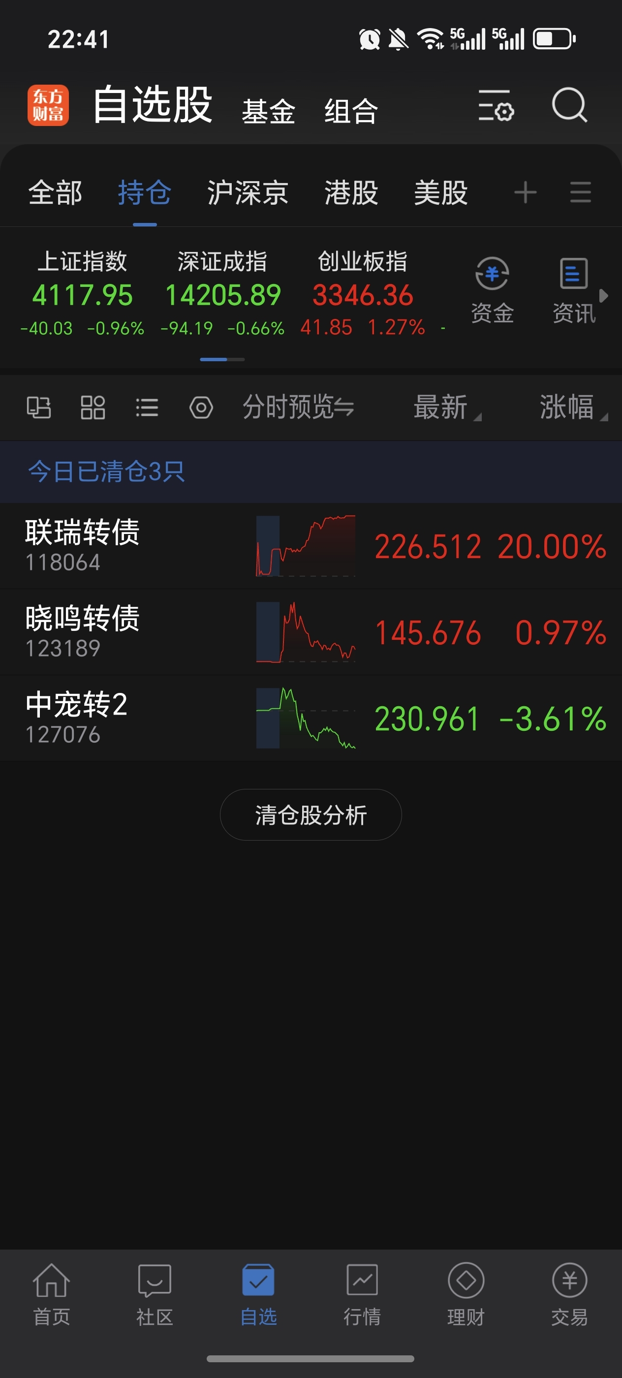 昨天基于商业航天的高潮那天情况,看到贵金属板块指数涨停涨幅,就决定清仓白银有色。今天盘中观察到跌停股数增多,决定空仓观望,只清仓参与转债。