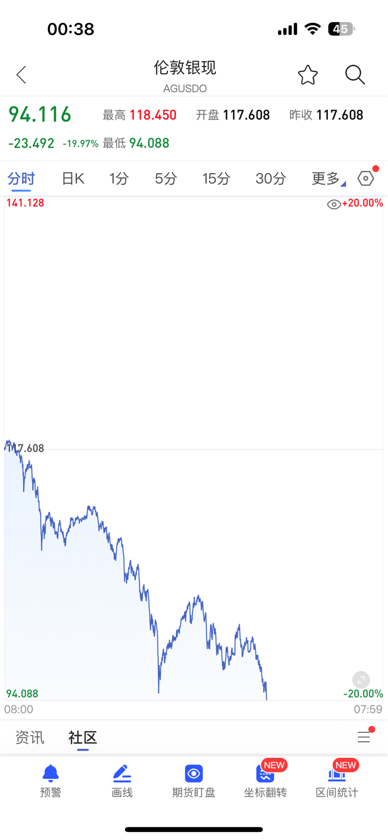 记录一下上一次是1980年单日跌幅38%,这一次是20%必须记录!