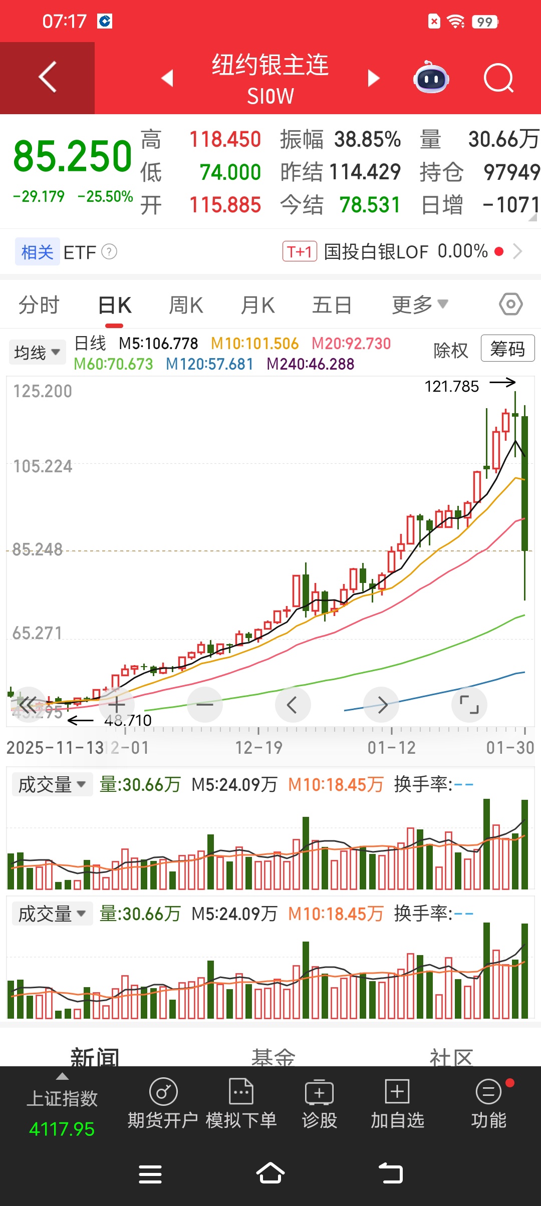 白银期货一天暴跌30%,把前面十几天的涨幅跌没了