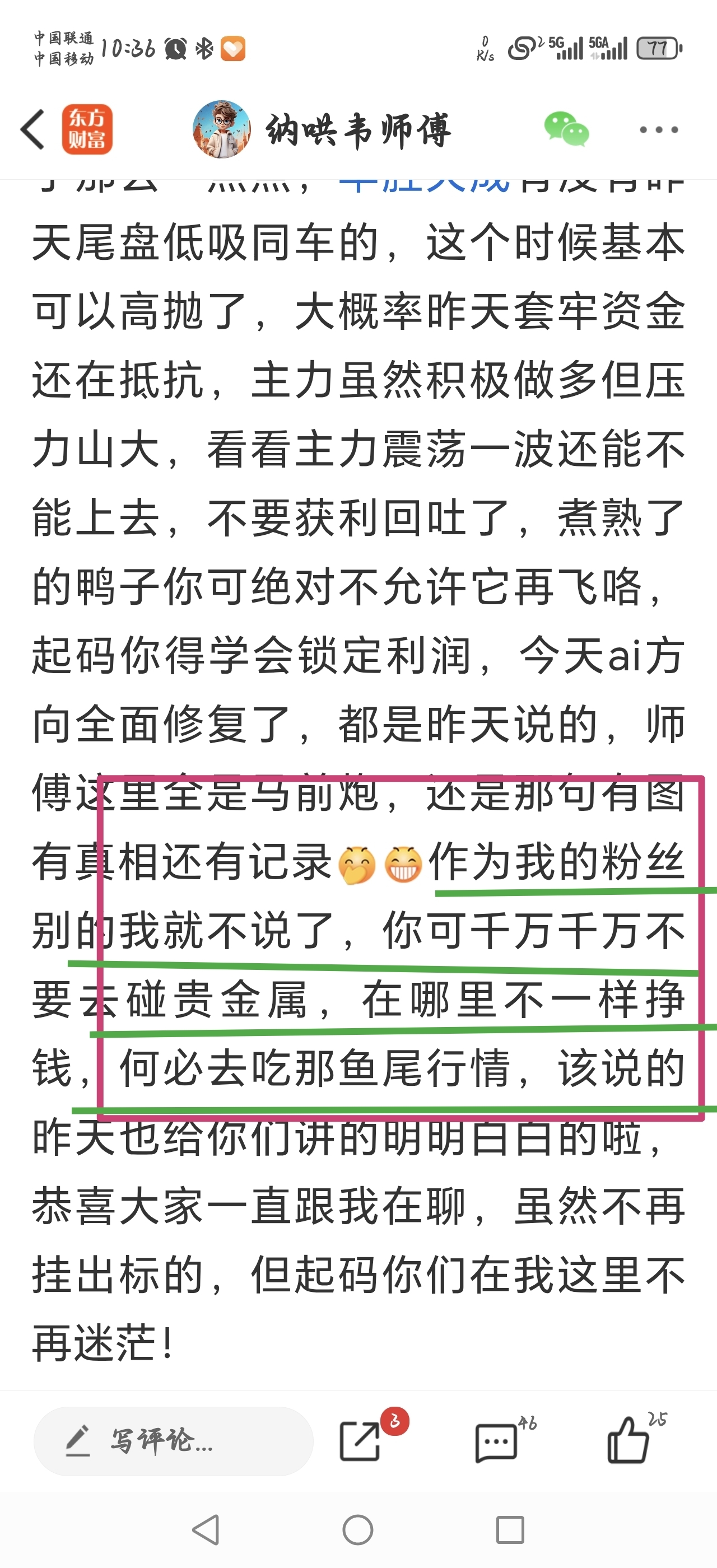 温馨提示: 1.根据《证券法》规定,禁止编造、传播虚假信息或者误导性信息,扰乱证券市场;2.用户在本社区发表的所有资料、言论等仅代表个人观点,与本网站立场无关,不对您构成任何投资建议。用户应基于自己的独立判断,自行决定证券投资并承担相应风险。《东方财富社区管理规定》