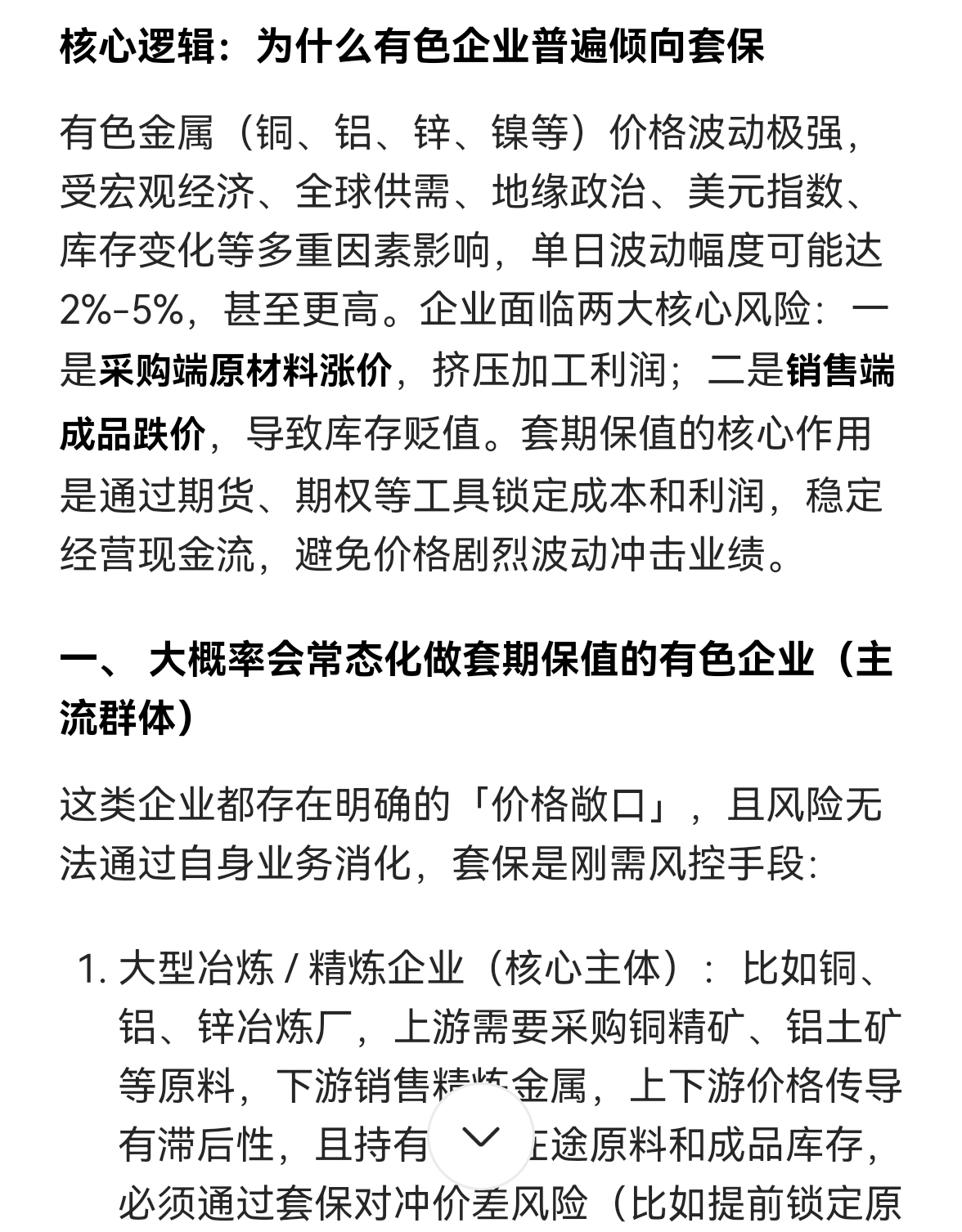 所以有色金属企业的业绩不一定全跟期货涨幅同步的,因为多少都有套期保值