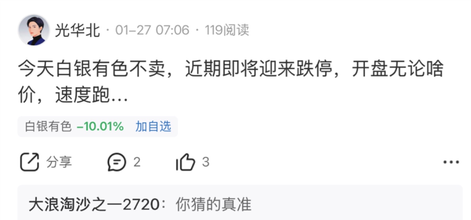 温馨提示: 1.根据《证券法》规定,禁止编造、传播虚假信息或者误导性信息,扰乱证券市场;2.用户在本社区发表的所有资料、言论等仅代表个人观点,与本网站立场无关,不对您构成任何投资建议。用户应基于自己的独立判断,自行决定证券投资并承担相应风险。《东方财富社区管理规定》