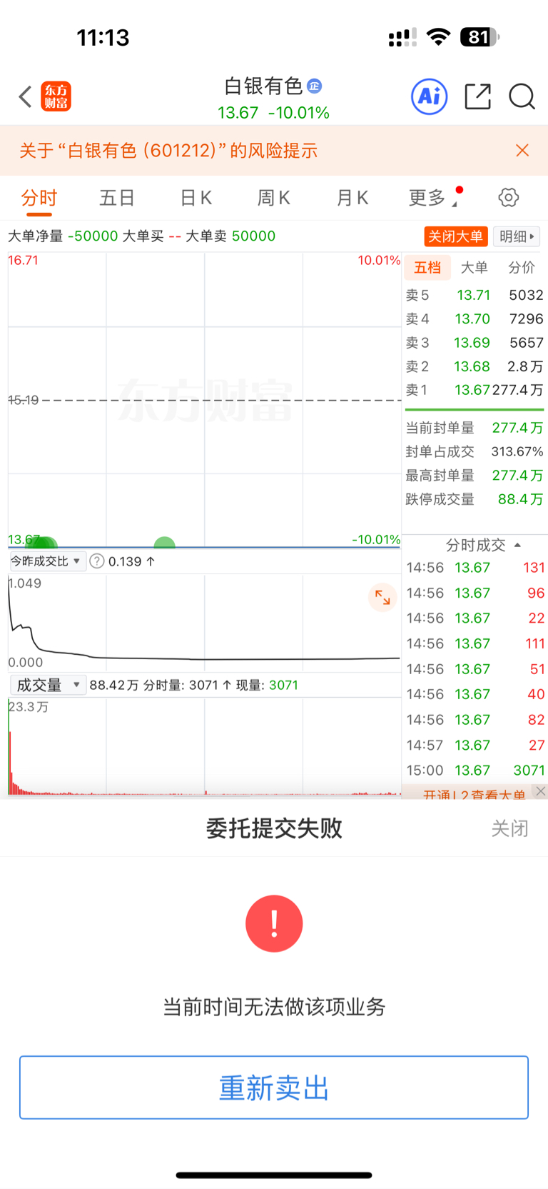 $白银有色(SH601212)$ 我看评论区都挂出去,为啥我这显示时间交易不了呀