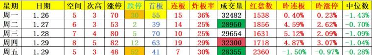 最重要的是给本周定义了下降周期,错过1月26日盘前大局观 的同学都去面壁,那自然这周的红盘家数少的可怜,每天都是三千家待涨。