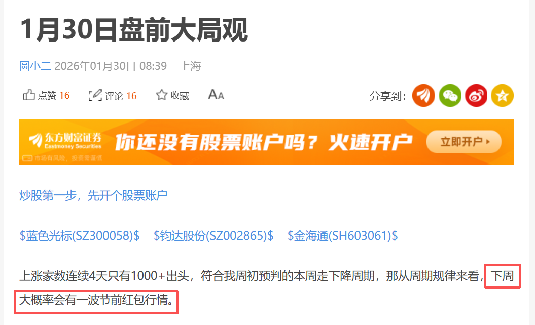 博主为股吧原创内容优质万粉作者,我习惯看一想二推三,善于抓取周期节点,在周期起爆时布局,人声鼎沸时离场。2026再次出发,在这里我将继续帮大家分析周期,培养顶级视野。