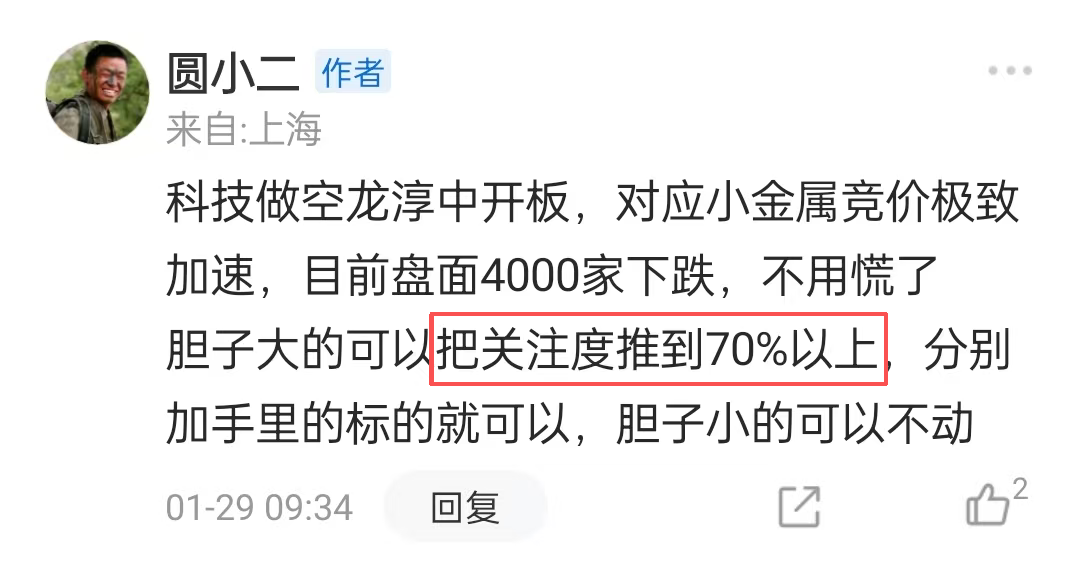 尤其是在当天【实解】了蓝色光标,收盘跌了8%,并且尾盘没有抢筹,光头阴,同时志特新材还给了20%跌停,我就问你,你慌不慌?评论区有不少兄弟开始慌了,毕竟都刚刚经历了航天二战,裤衩都烂,此时再来一个A,谁都受不了。