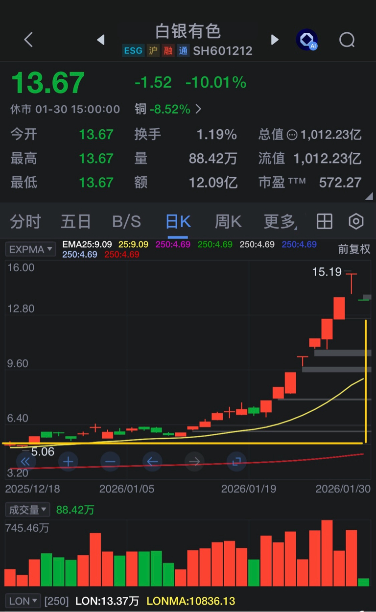 白银有色对标国际白银就一目了然了,国际白银已经抹去所有的涨幅,那白银有色也将抹去