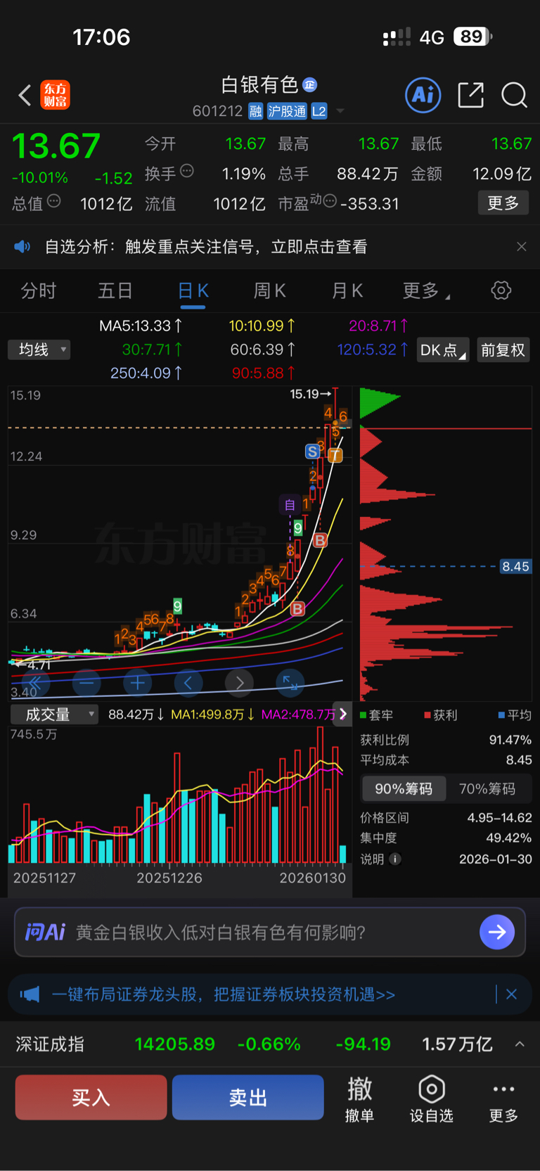 $白银有色(SH601212)$ 随便你跌,还有百分之60无所谓吊