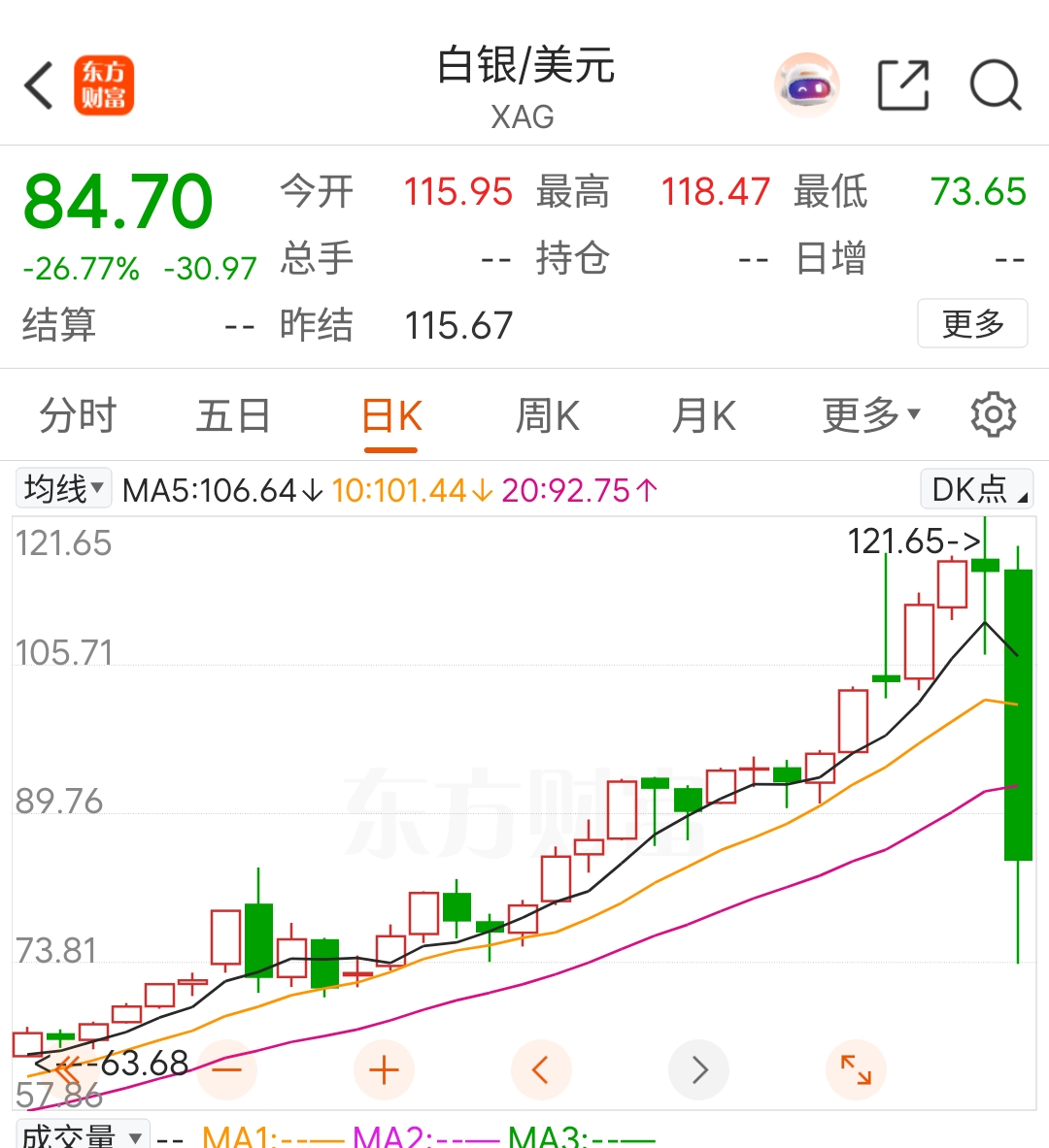 一天把19天的涨幅抹平了,买白银的,周一要享福了,开始数板