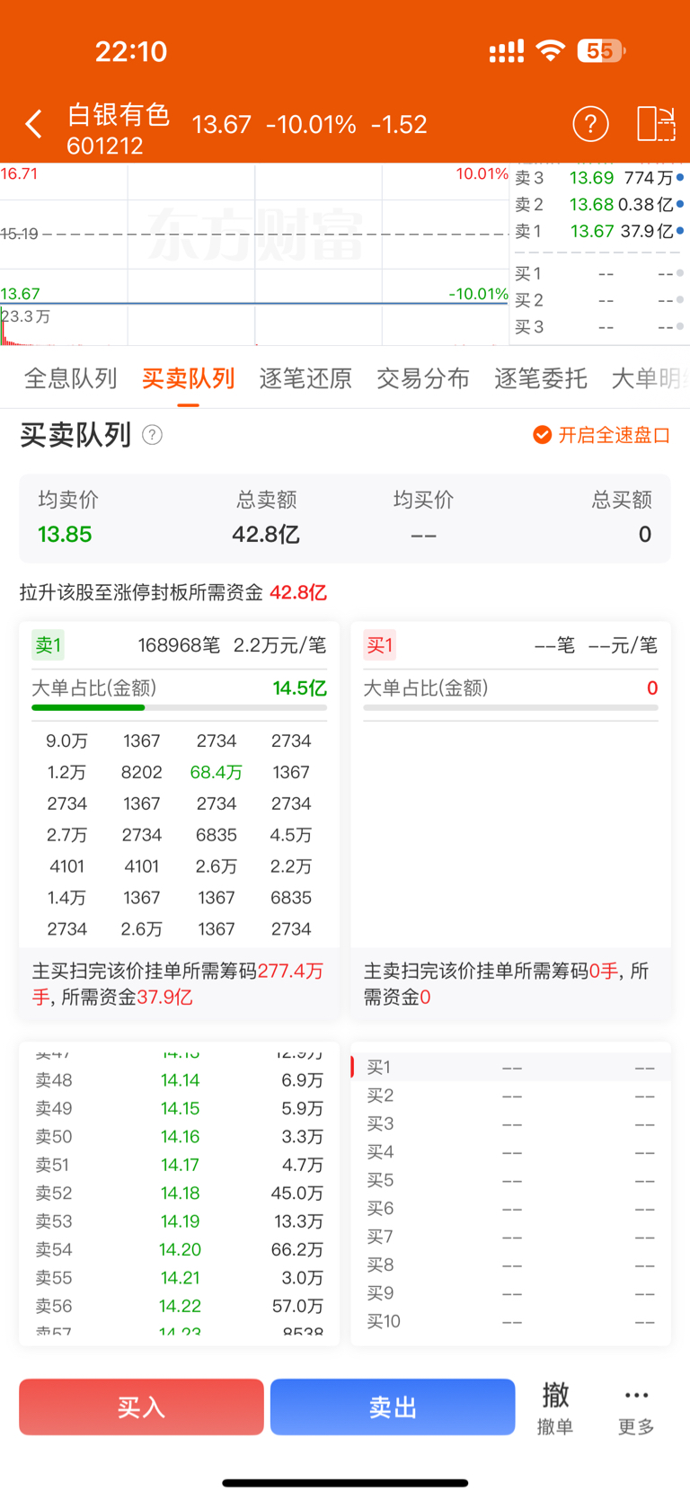$白银有色(SH601212)$ 隔夜挂单全卖盘,周一没人逃的出去,一致看空