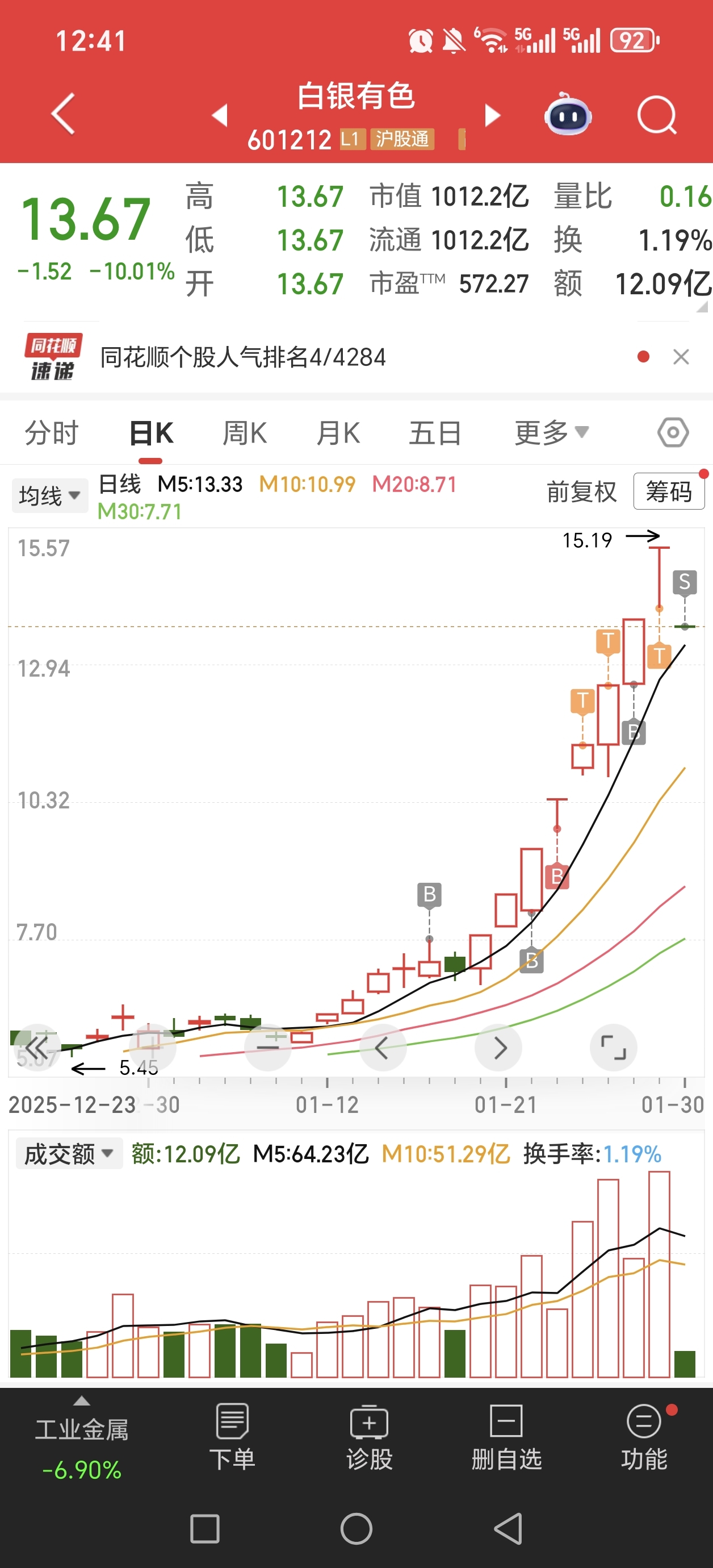 $白银有色(SH601212)$ 白银有色有几个跌停???四个????