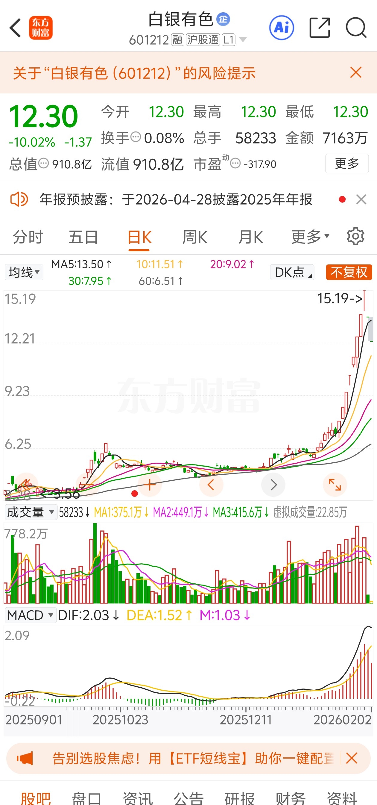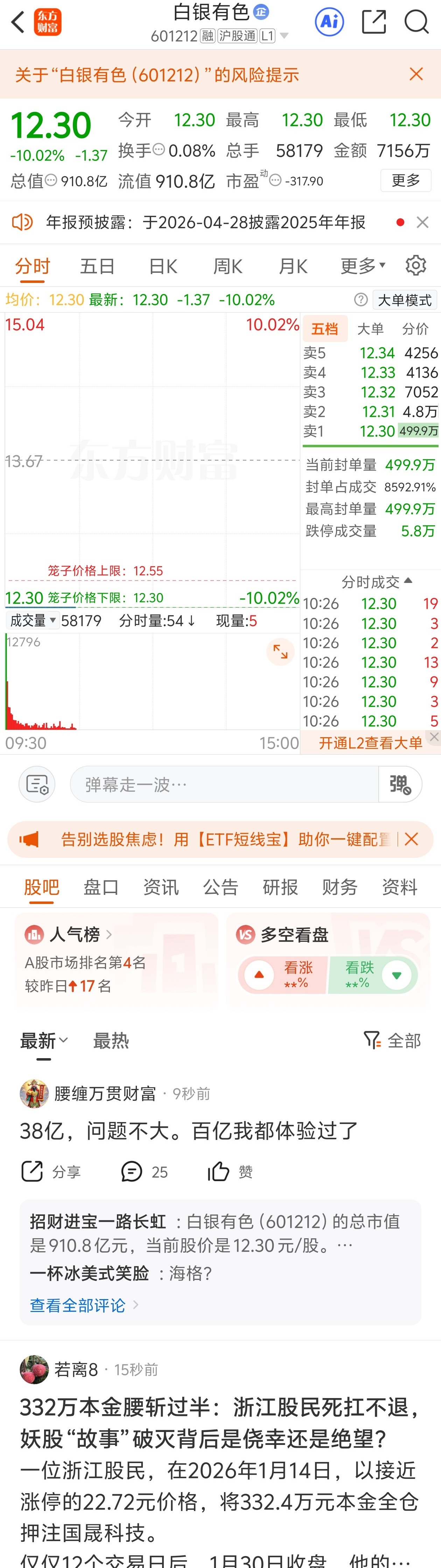 400万手抛压,但是没有量,多头怕了