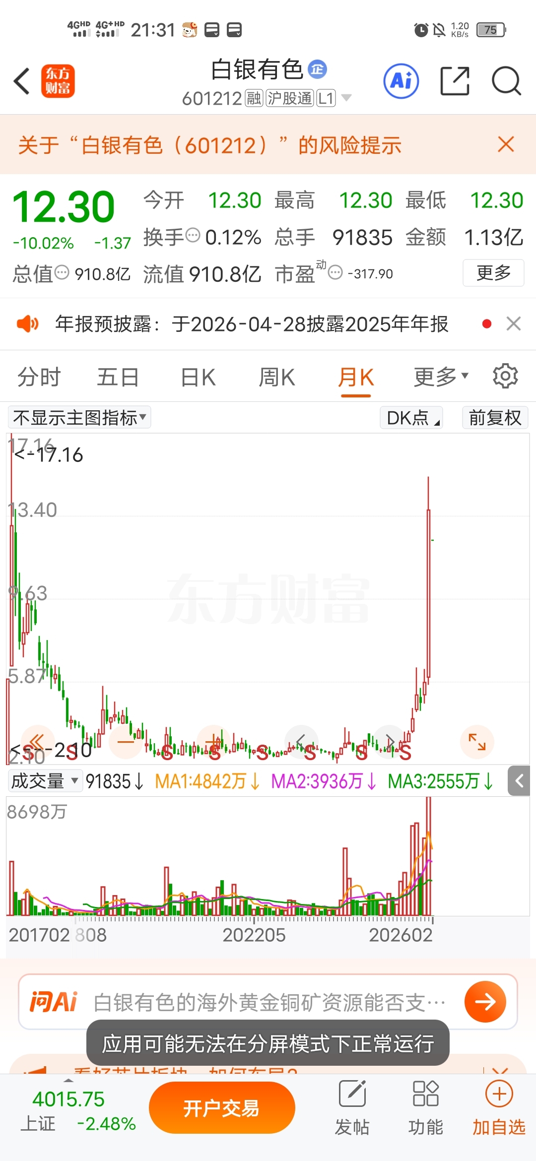 $白银有色(SH601212)$ 10年解套