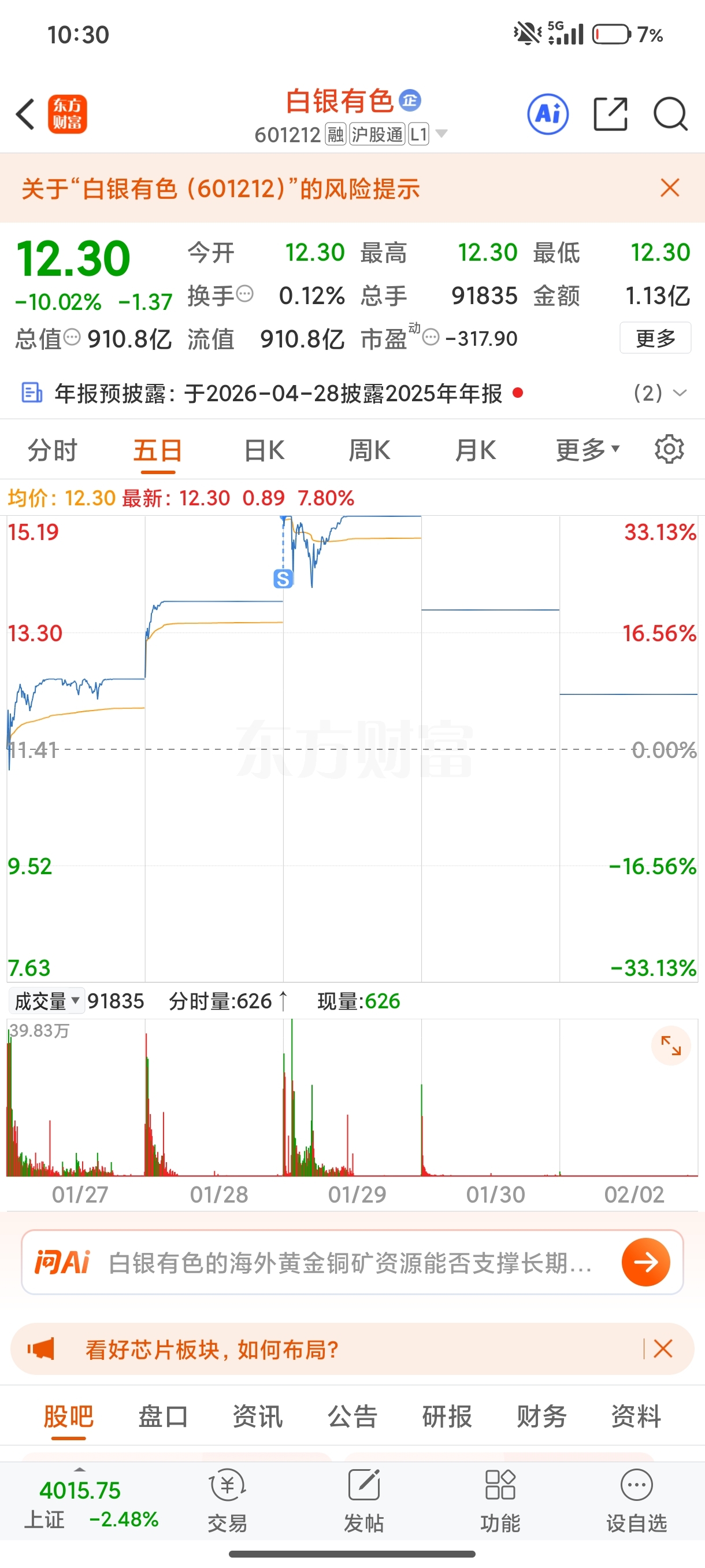 $白银有色(SH601212)$ 你们猜我为啥没做t?