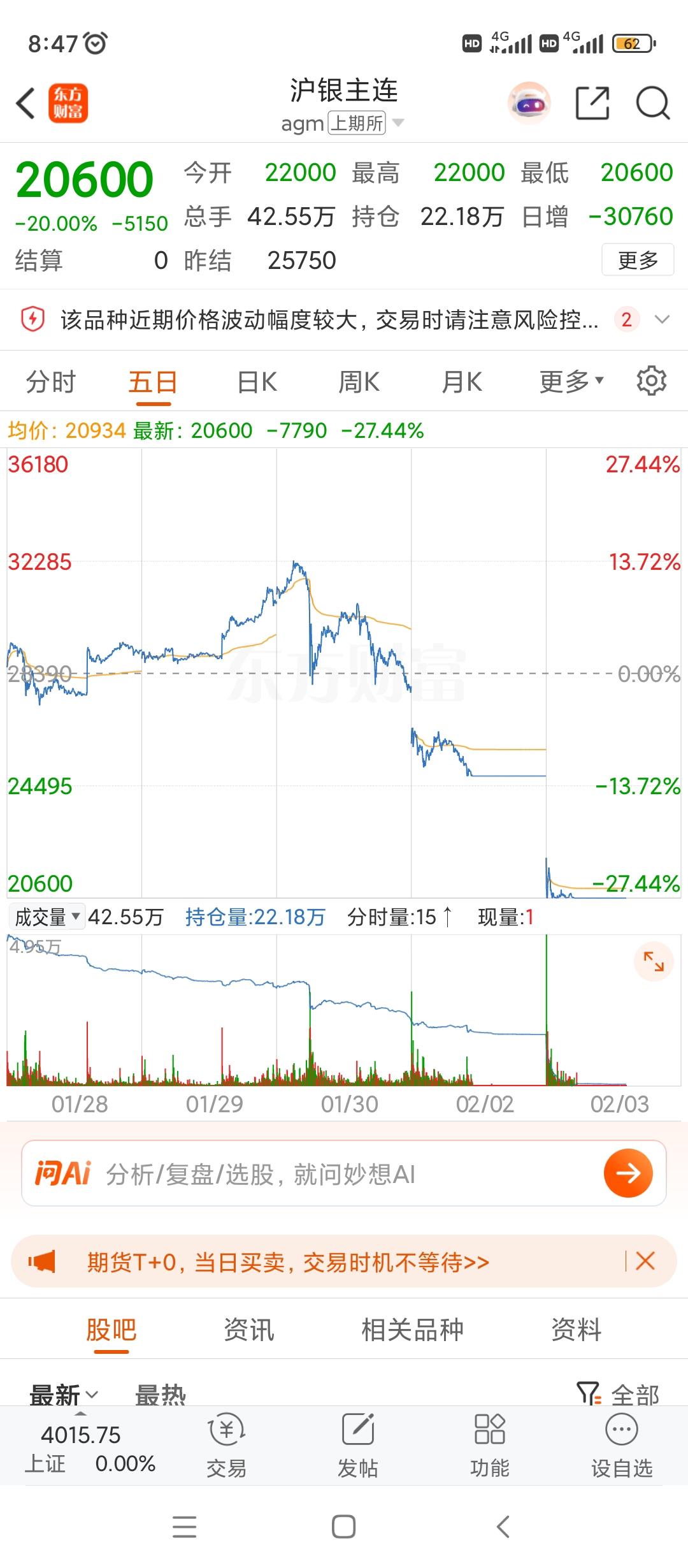 $白银有色(SH601212)$ 必然跌停