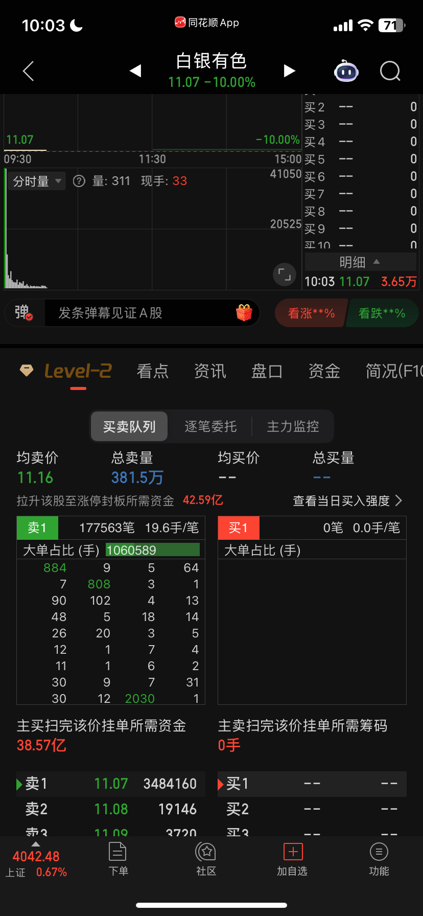 $白银有色(SH601212)$ 果然都是瓜皮散户,没有主力做引导,今天应该开板了