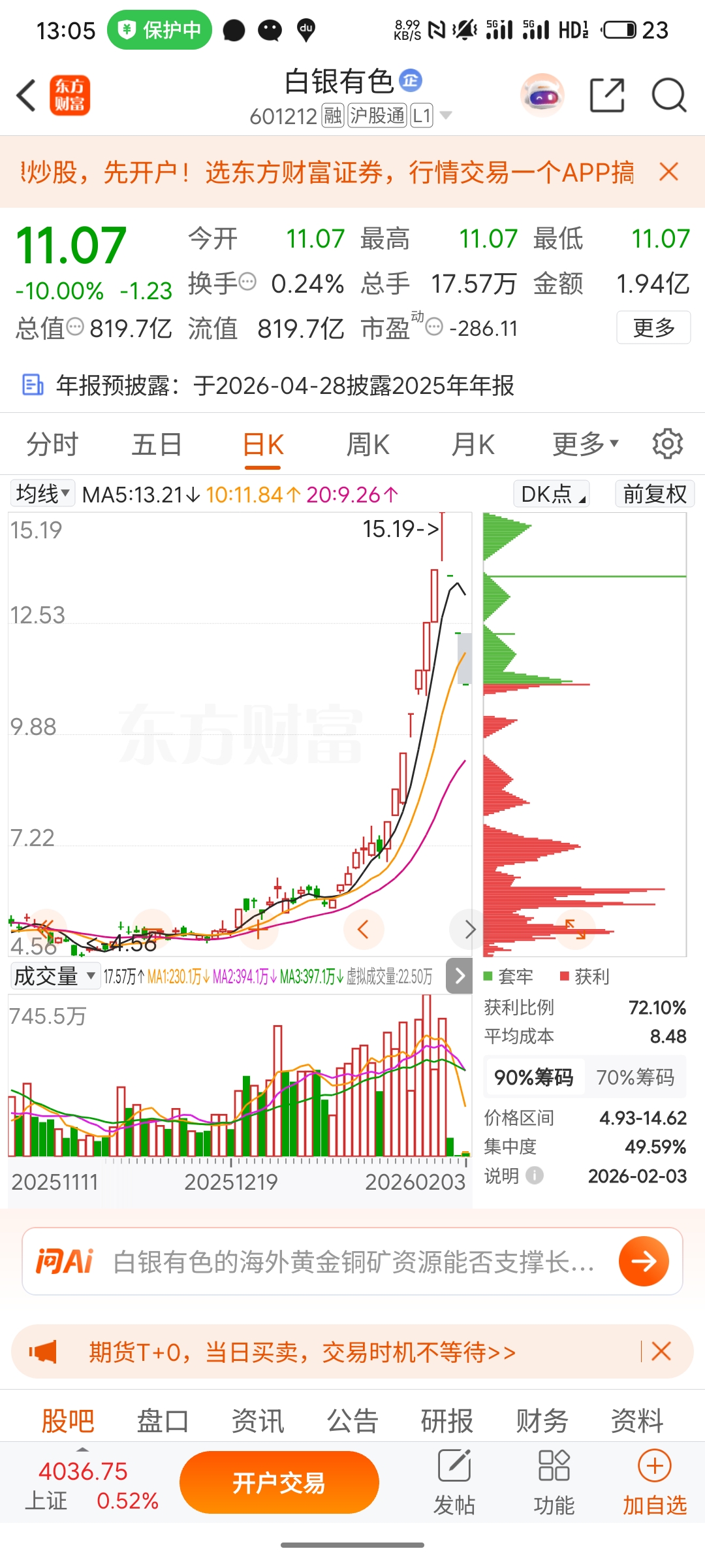 $白银有色(SH601212)$ 你们在想啥呢,72%的获利盘,能让你们跑了?