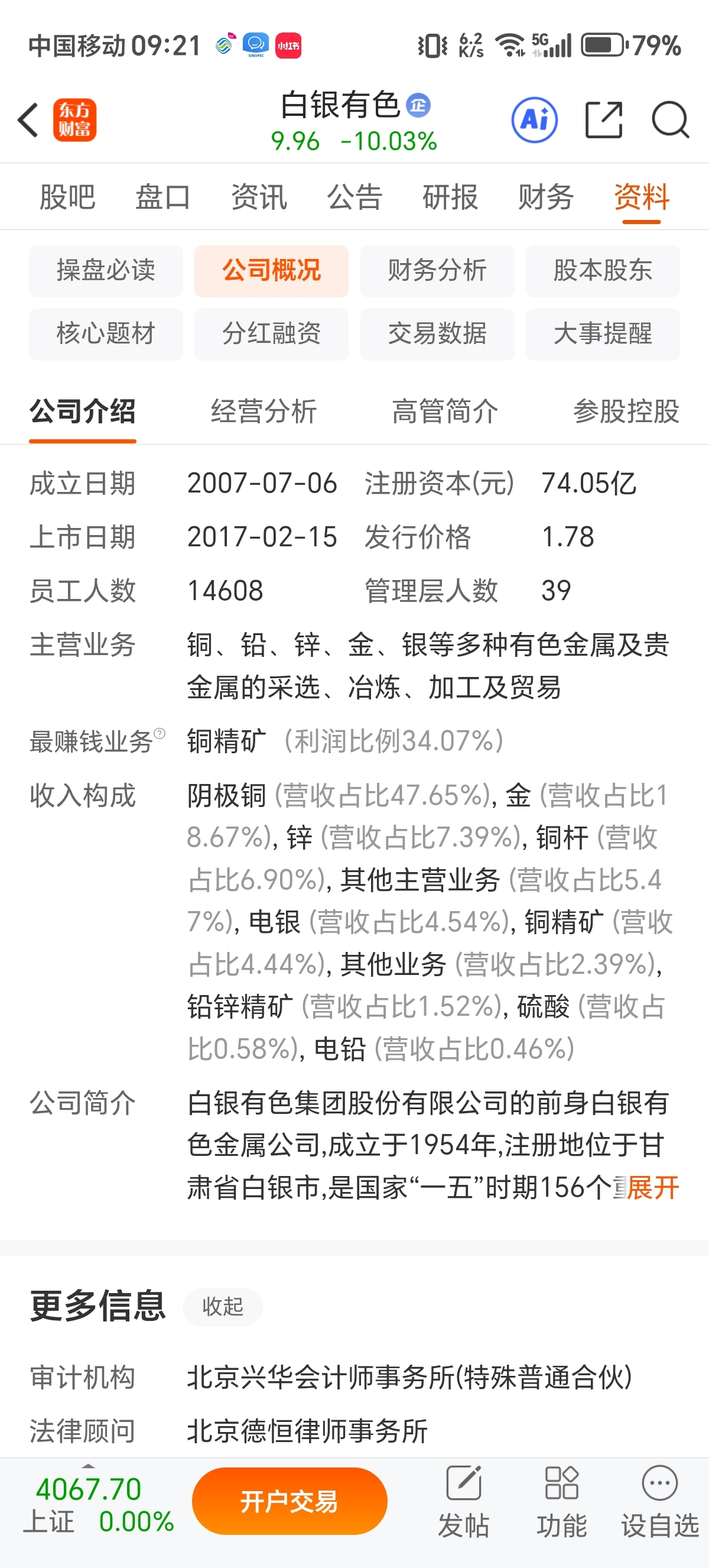 有色金属公司,公司所在地甘肃省白银市,好多人认为白银有色主营业绩是白银哈哈哈