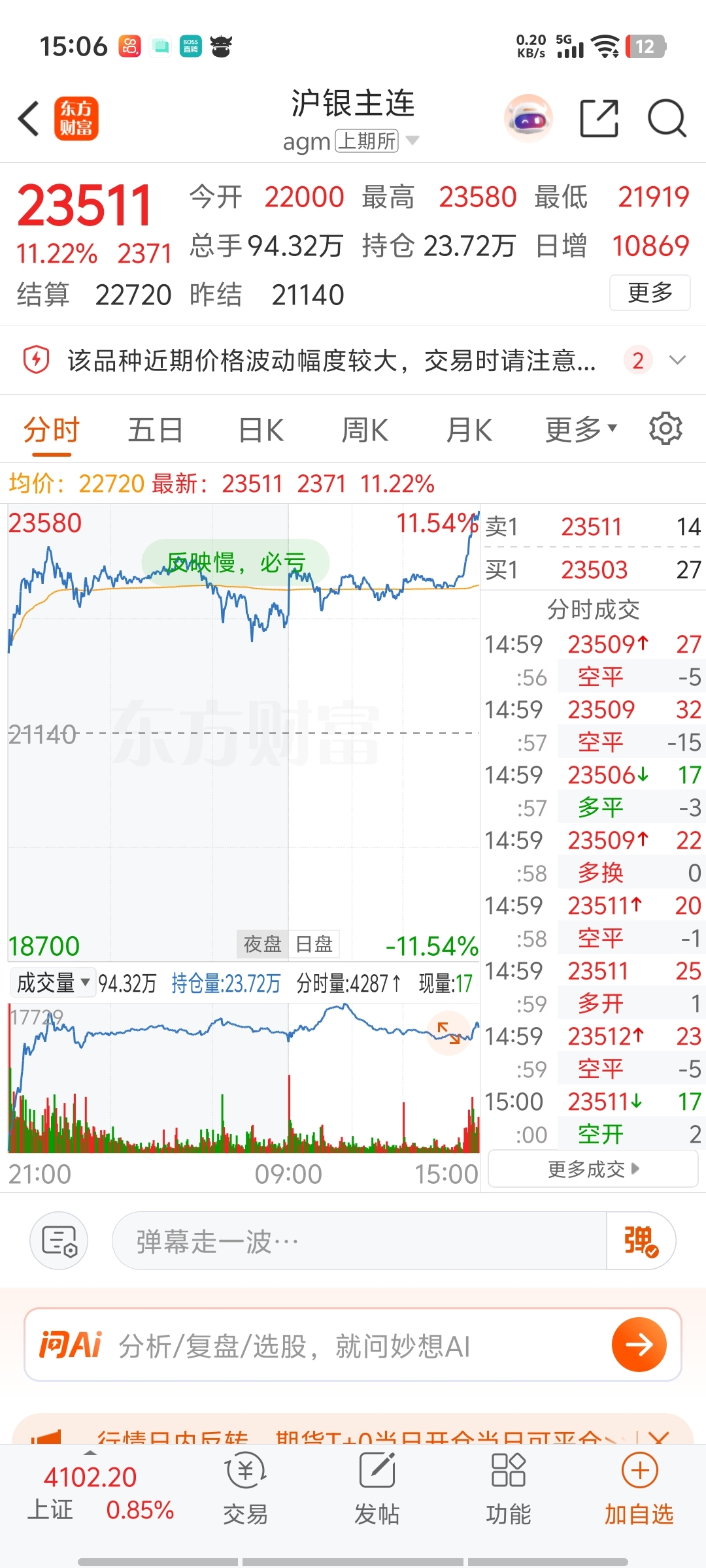 $白银有色(SH601212)$ 白银为什么拉升,因为沪银期货直线拉涨,目前涨11%。