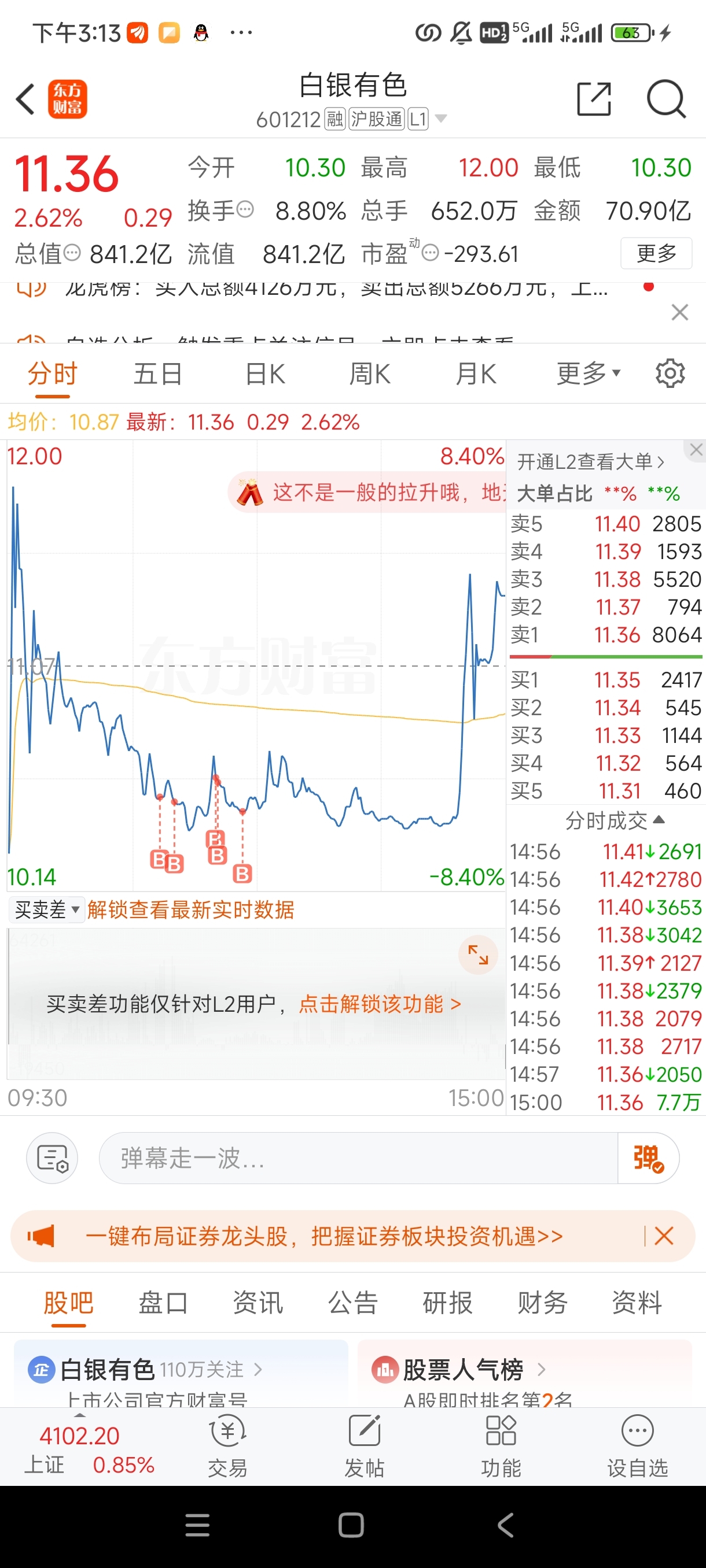 $白银有色(SH601212)$ 谢谢主力
