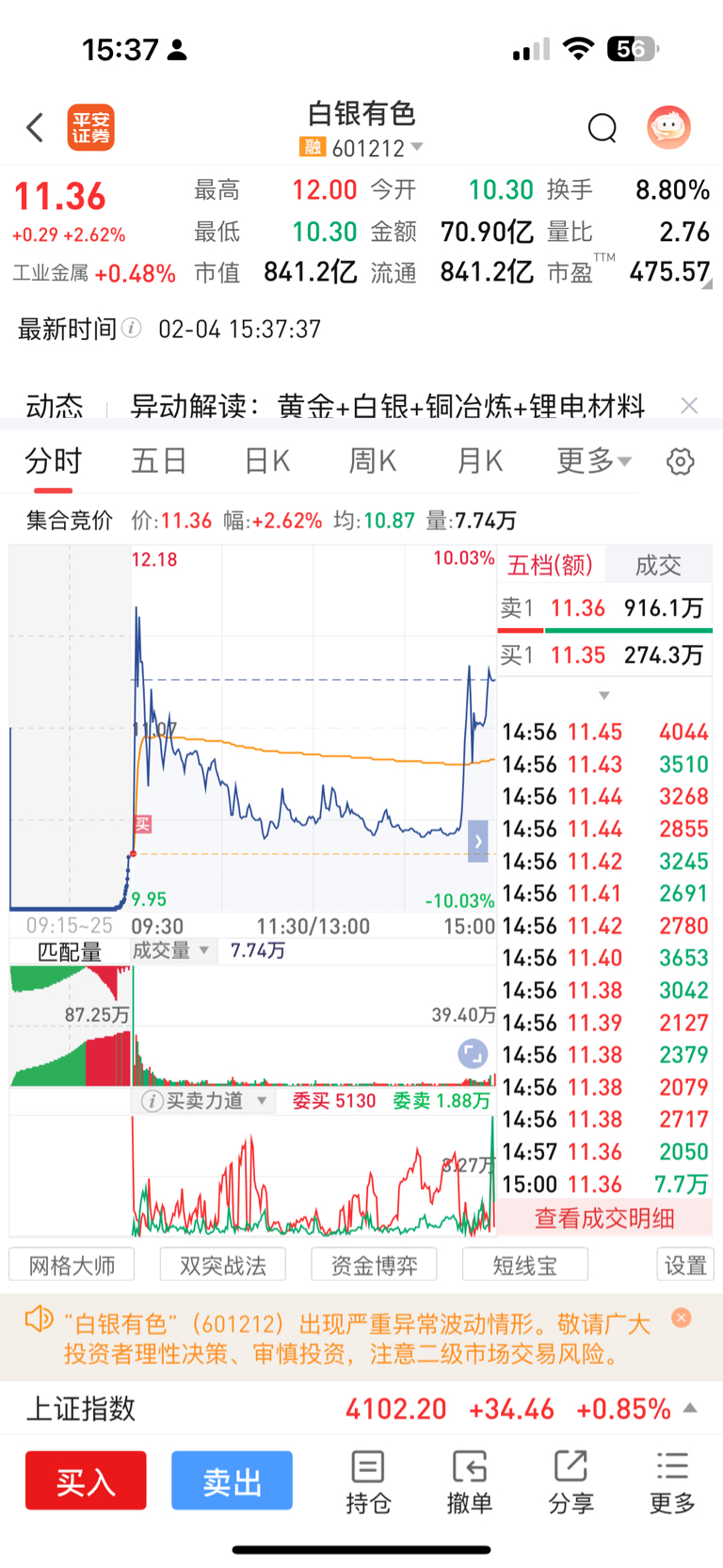 $白银有色(SH601212)$ 睡觉醒了一看,10个多点了
