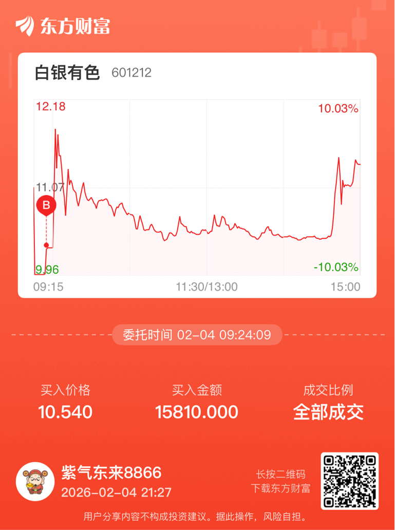 $白银有色(SH601212)$ 怕啥,大不了来个跌停
