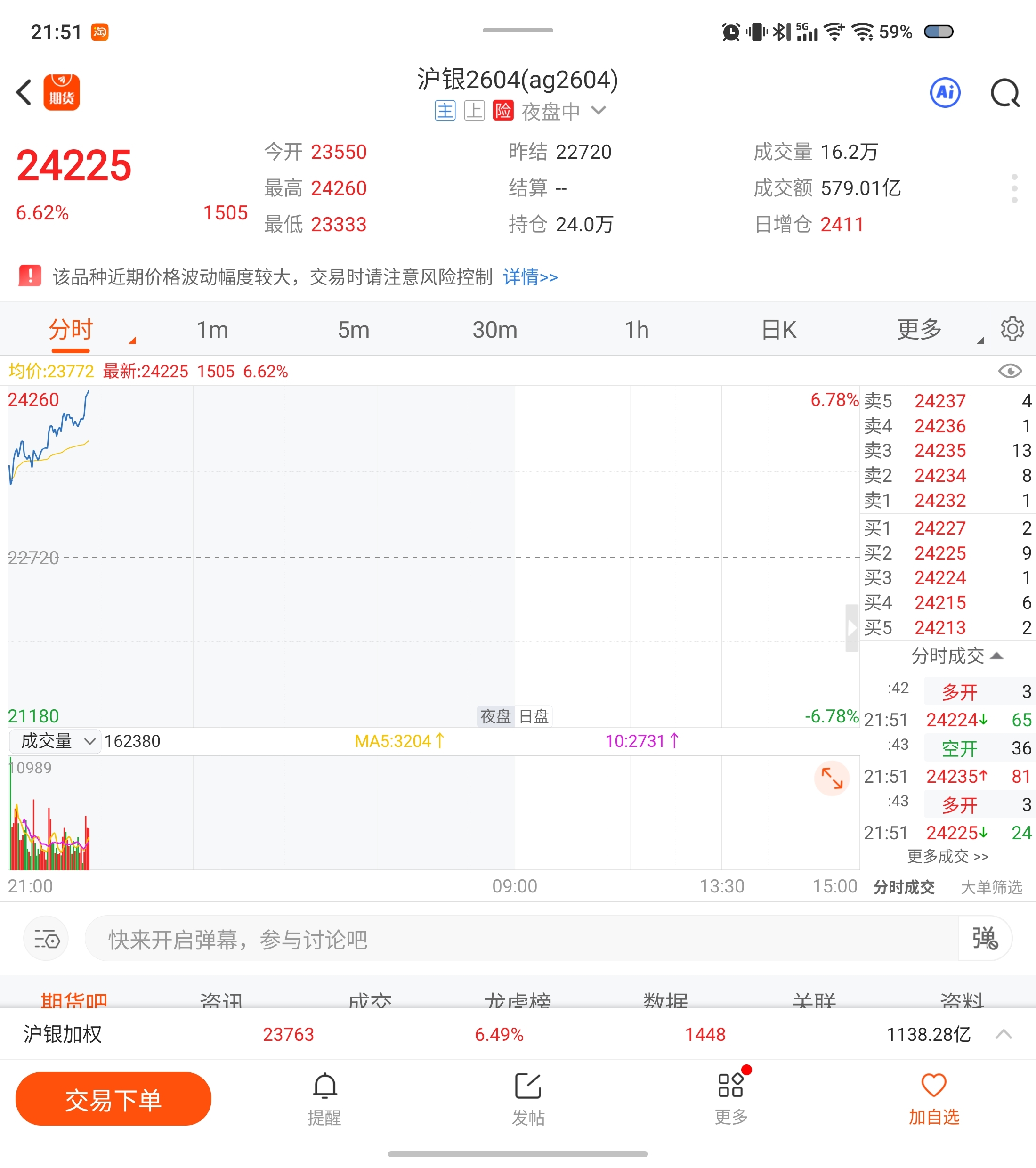$白银有色(SH601212)$ 沪银疯了