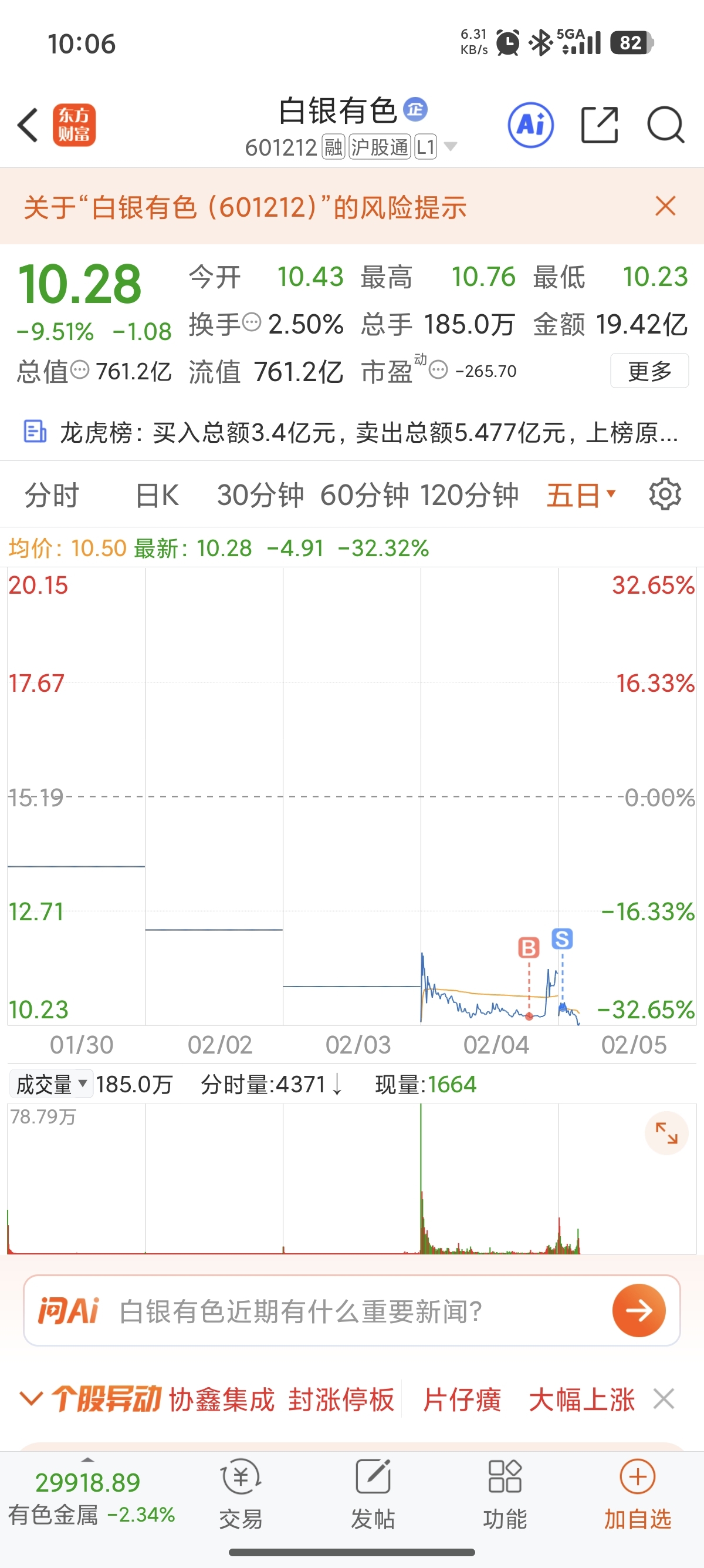 $白银有色(SH601212)$ 今天板块分歧,开的太低开盘后买盘太少了,没动力,上不去就走,如果开的太高(水下2%以上)竞价直接可以砸了