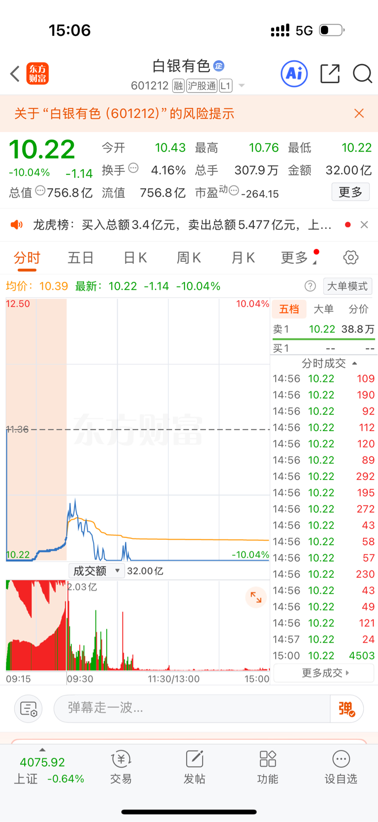 吃跌停板,调整过后比能涨回!坚持自己的选择$白银有色(SH601212)$