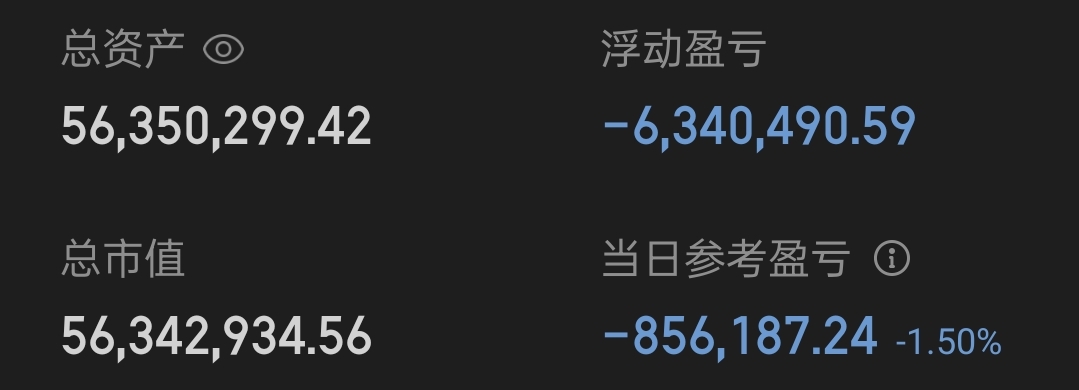 少帅日记;初始资产:7000万;今日战况:-1.50%