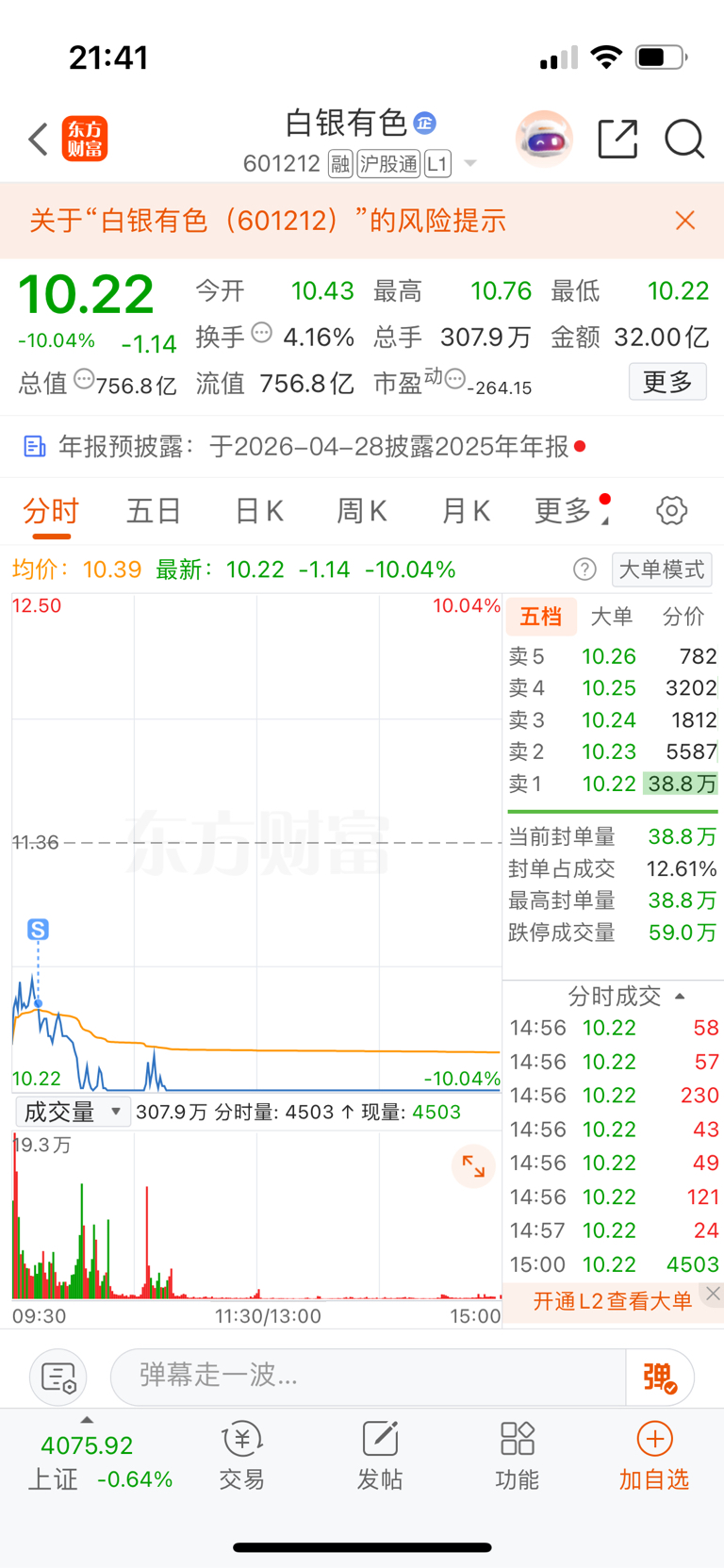 $白银有色(SH601212)$ 虽然买的不多,还是还是跑了去东百