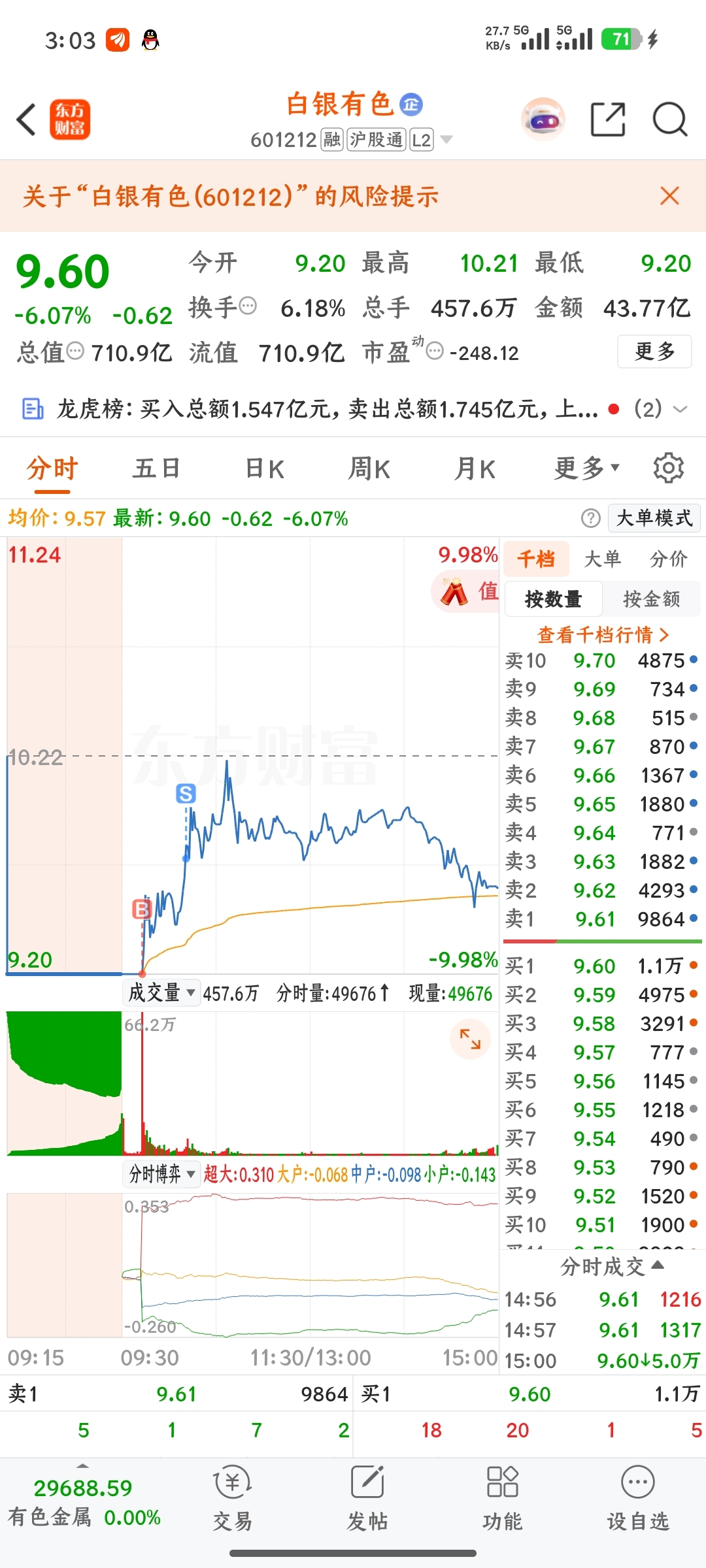 $白银有色(SH601212)$ 尾盘不敢加仓了,下周看吧,今天放量应该到底了