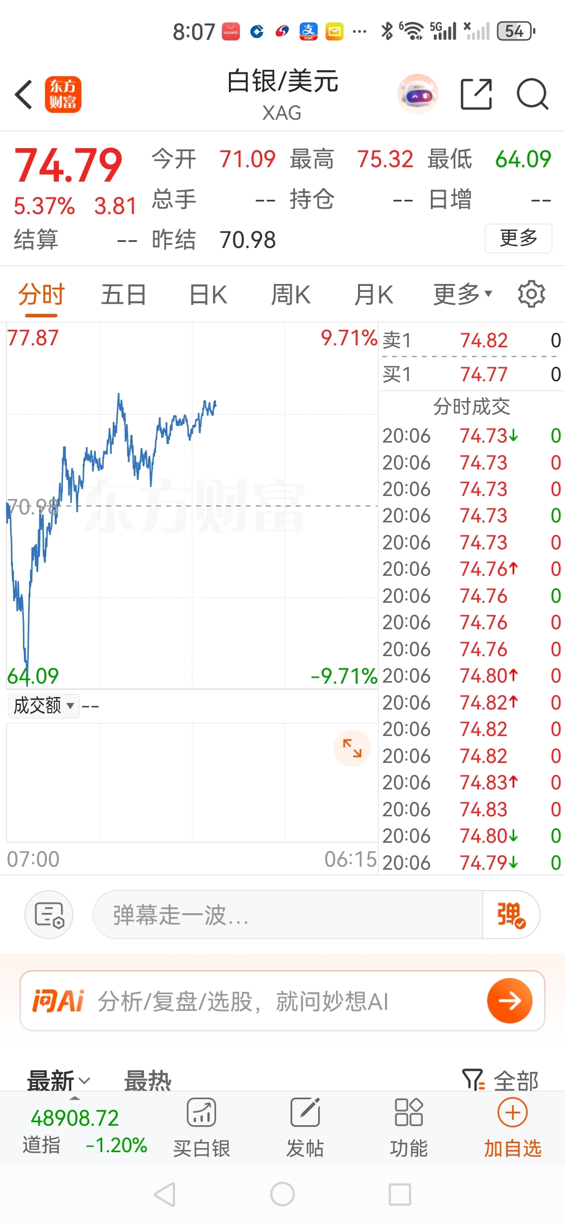 今晚美国白银期货大涨6个点,下周一白银股票秒板涨停。