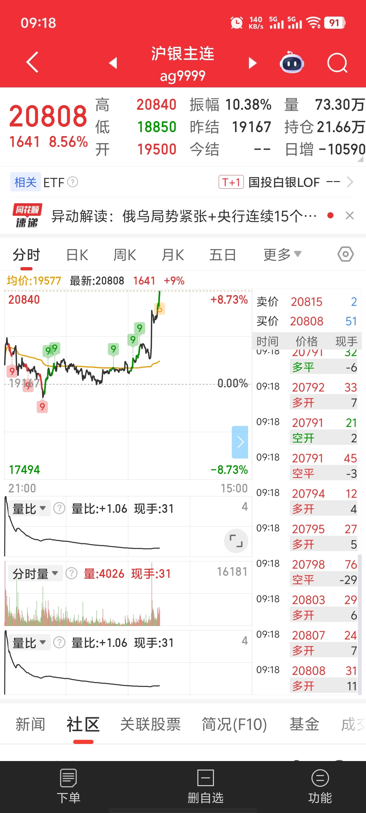 $白银有色(SH601212)$ 白银期货要涨停了