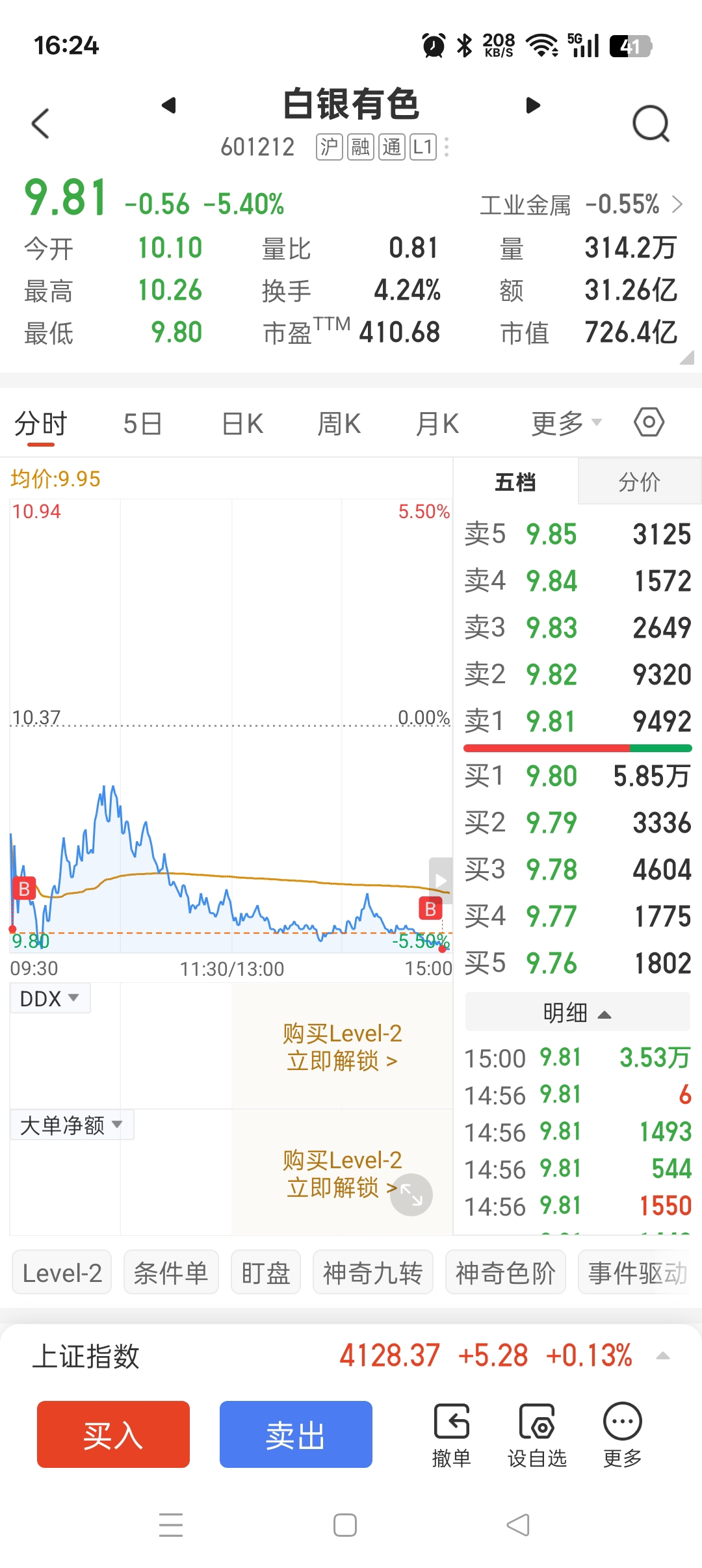 $白银有色(SH601212)$ 只有我默默的付出 跌到哪里我补到哪里