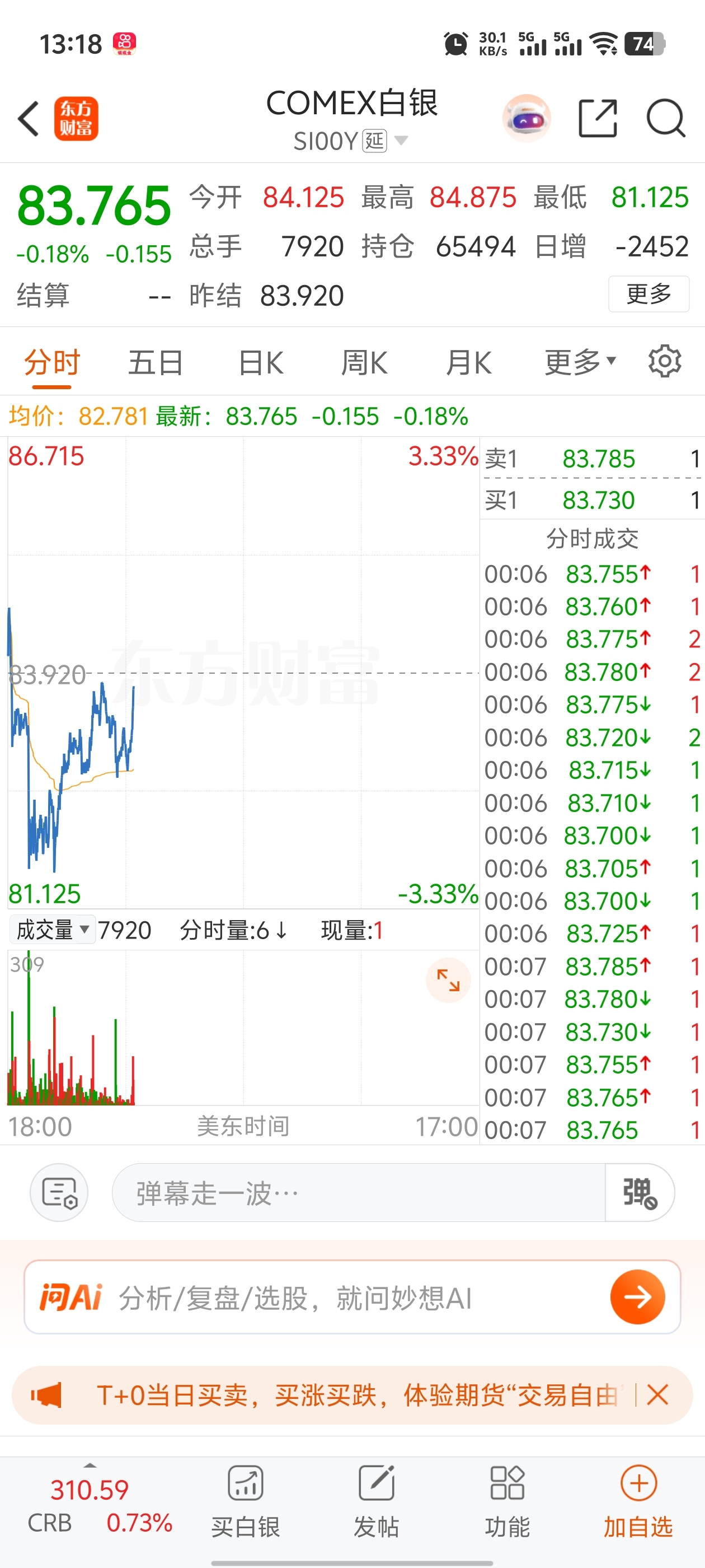 白银期货直线拉升