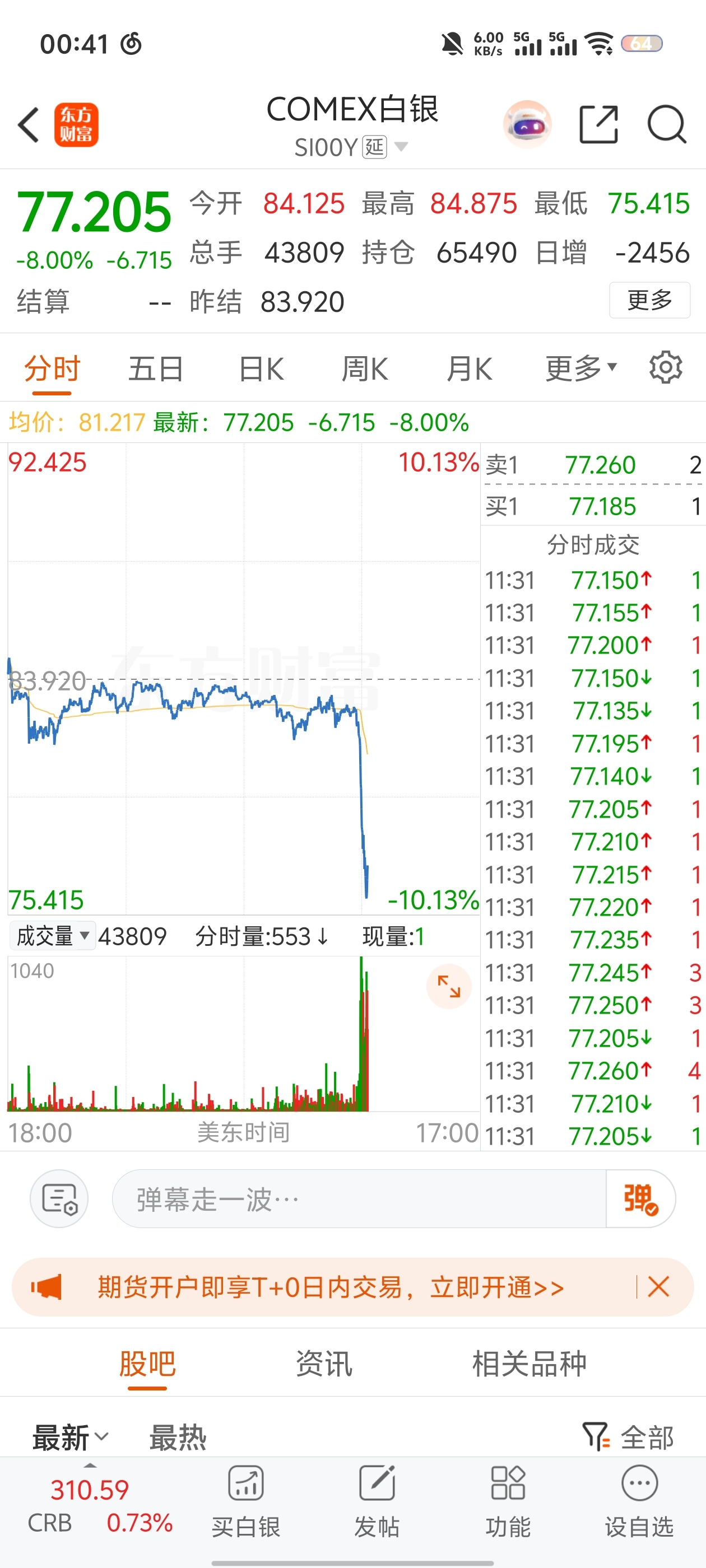 $白银有色(SH601212)$ 虽然这货和白银没啥关系,当然是这货是因为白银涨起来的呀,多少还是会被影响的吧,感觉明天应该又是跌停