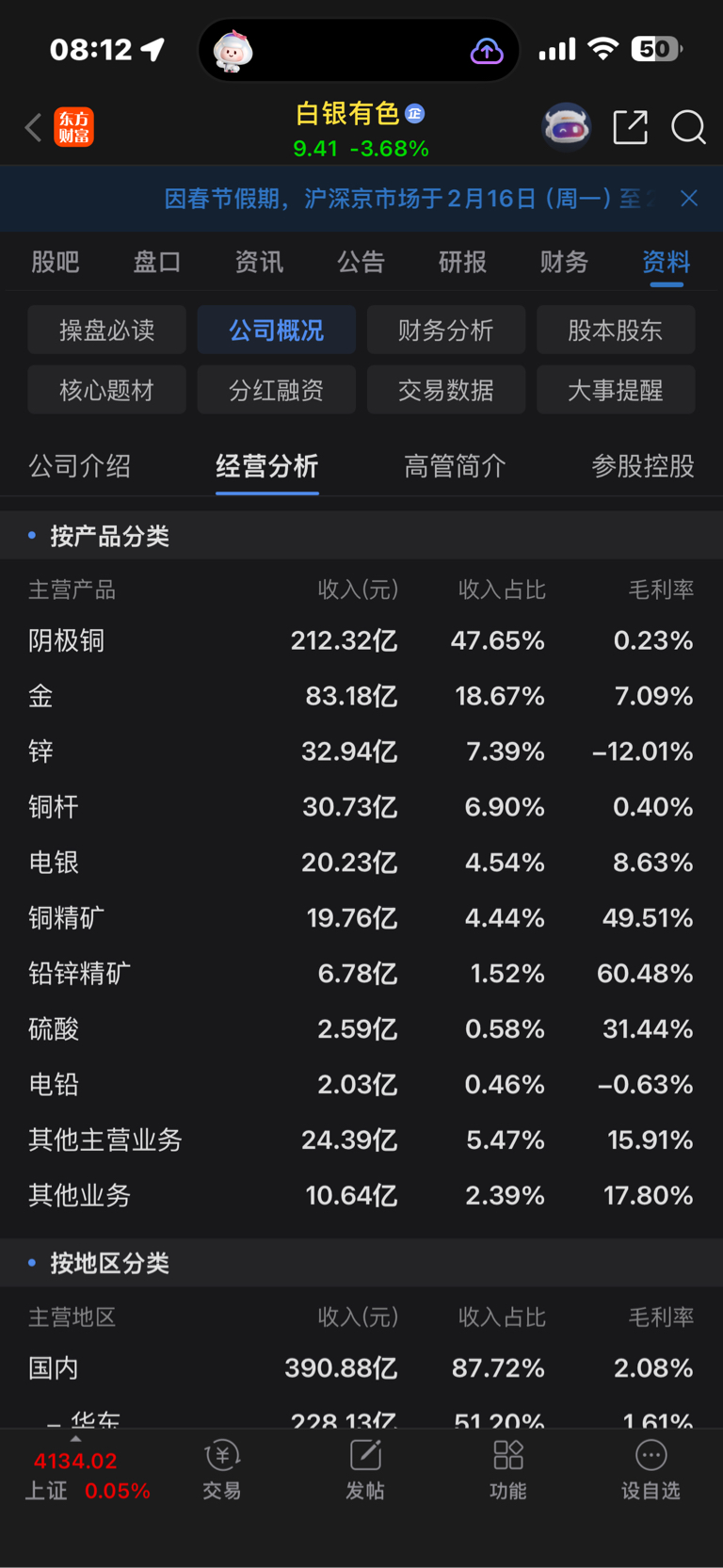 $白银有色(SH601212)$ 闹了半天,白银有色,主营是铜,白银业务只有一丢丢