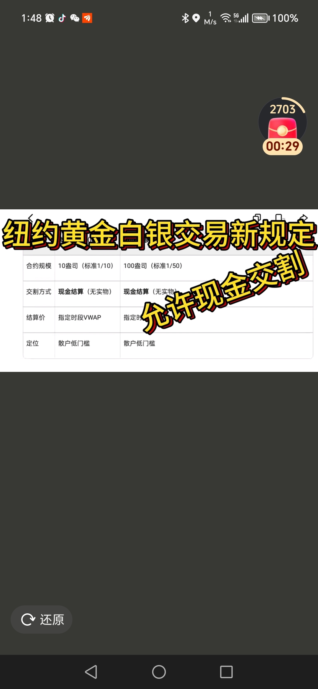 $白银有色(SH601212)$ 号外号外,紧急号外:纽约交易所白银期货在我们春节期间改规则只用现金交割,摆明了没有实物白银交割,这不妥妥的把定价权和话语权让给了上交所和深圳水贝,没有实物交割你们就没有任何定价权和话语权