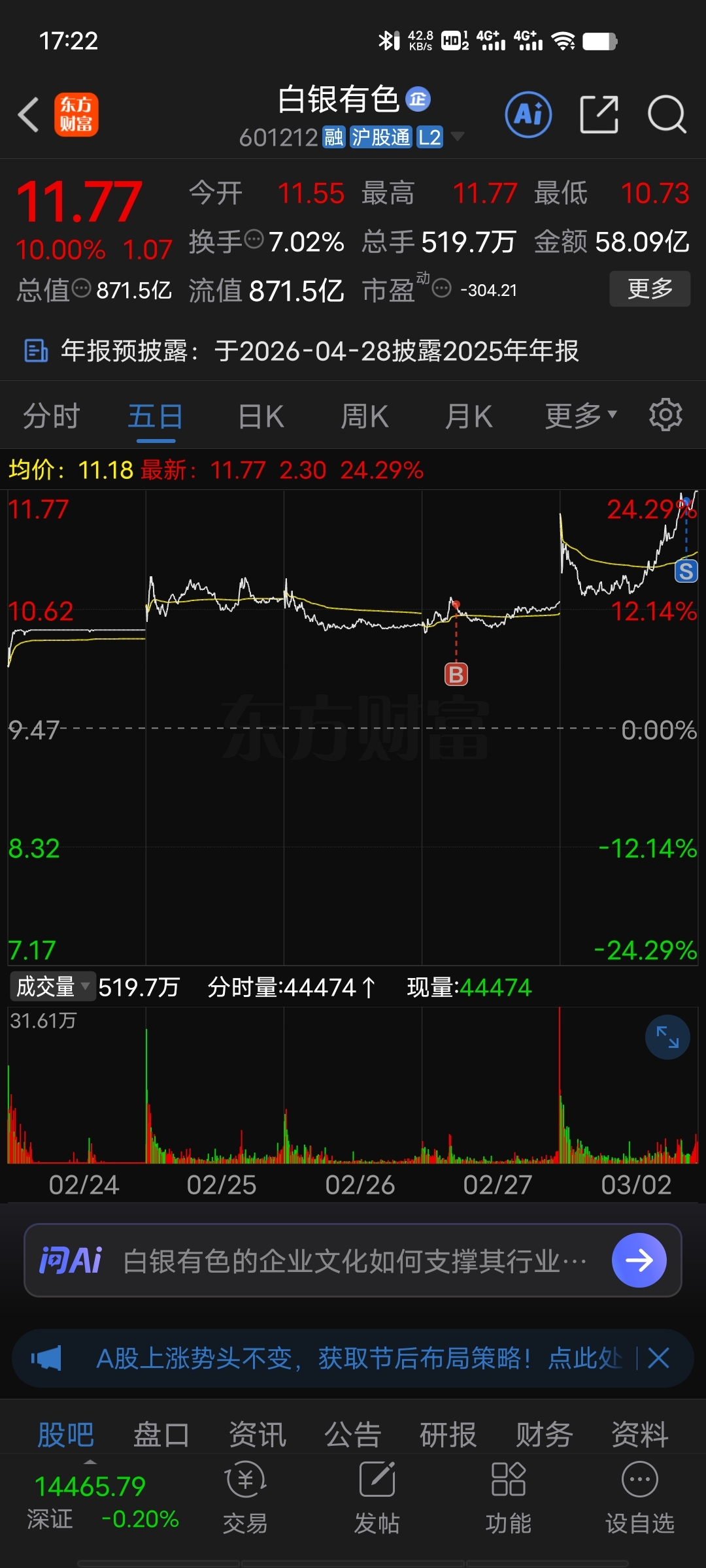 温馨提示: 1.根据《证券法》规定,禁止编造、传播虚假信息或者误导性信息,扰乱证券市场;2.用户在本社区发表的所有资料、言论等仅代表个人观点,与本网站立场无关,不对您构成任何投资建议。用户应基于自己的独立判断,自行决定证券投资并承担相应风险。《东方财富社区管理规定》