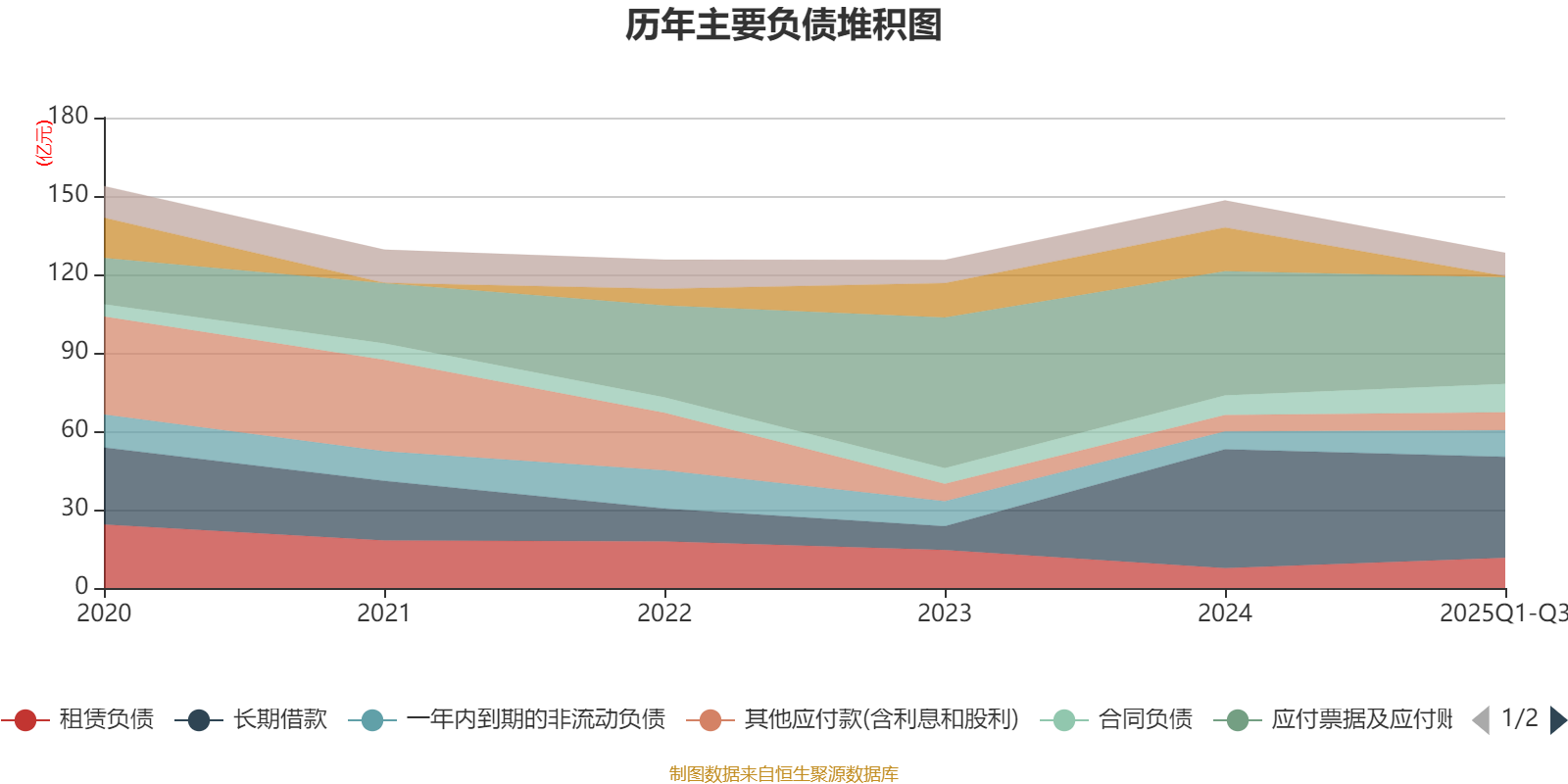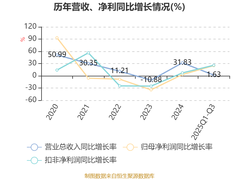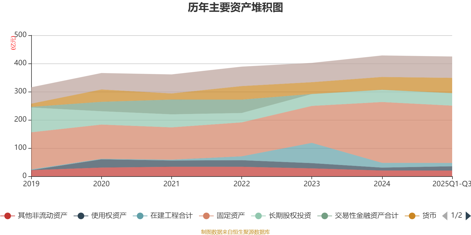 资产重大变化方面,截至2025年三季度末,公司固定资产较上年末减少5.74%,占公司总资产比重下降2.46个百分点;货币资金较上年末增加18.95%,占公司总资产比重上升2.12个百分点;应收款项融资较上年末增加154.34%,占公司总资产比重上升1.18个百分点;在建工程合计较上年末减少29.08%,占公司总资产比重下降1.12个百分点。
