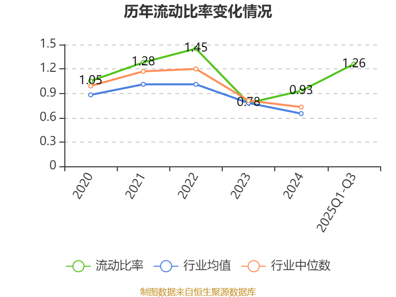 2025年前三季度,公司流动比率为1.26,速动比率为1.09。