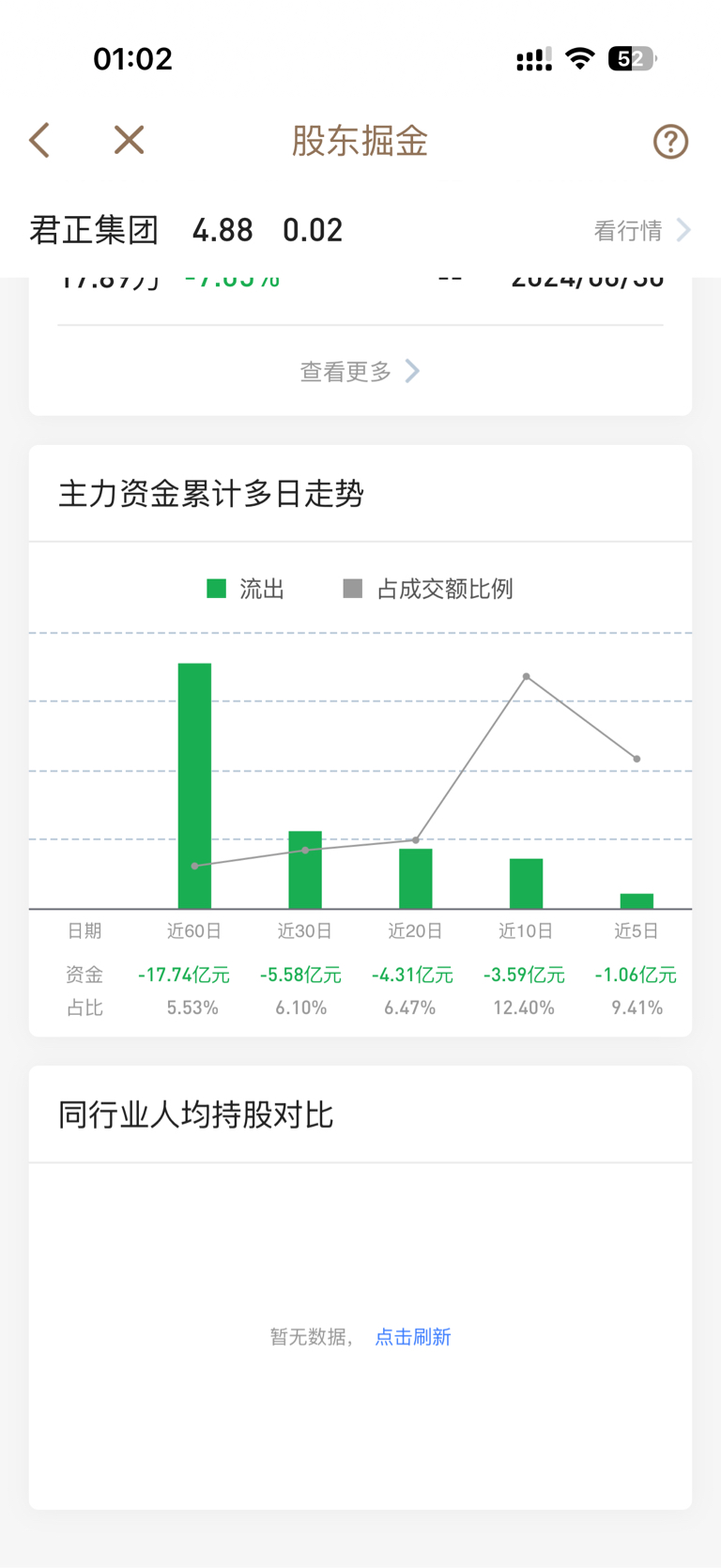 $君正集团(SH601216)$ 流出资金