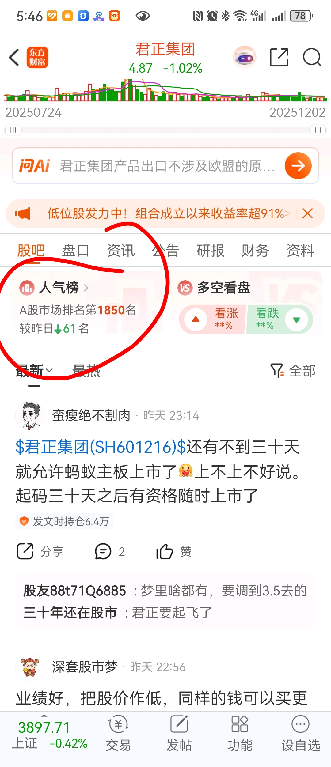 $君正集团(SH601216)$ 人气榜熬到2000就开始一路上
