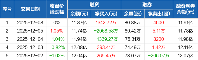 君正集团:融资净买入1342.72万元,融资余额11.87亿元(12-08)