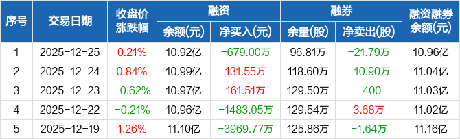 君正集团:融资净偿还679万元,融资余额10.92亿元(12-25)
