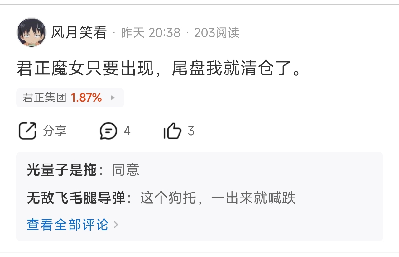 看空君正的朋友们,你们赶快把我拉黑,然后成为这两位高手的粉丝。你们就发财了。哈哈