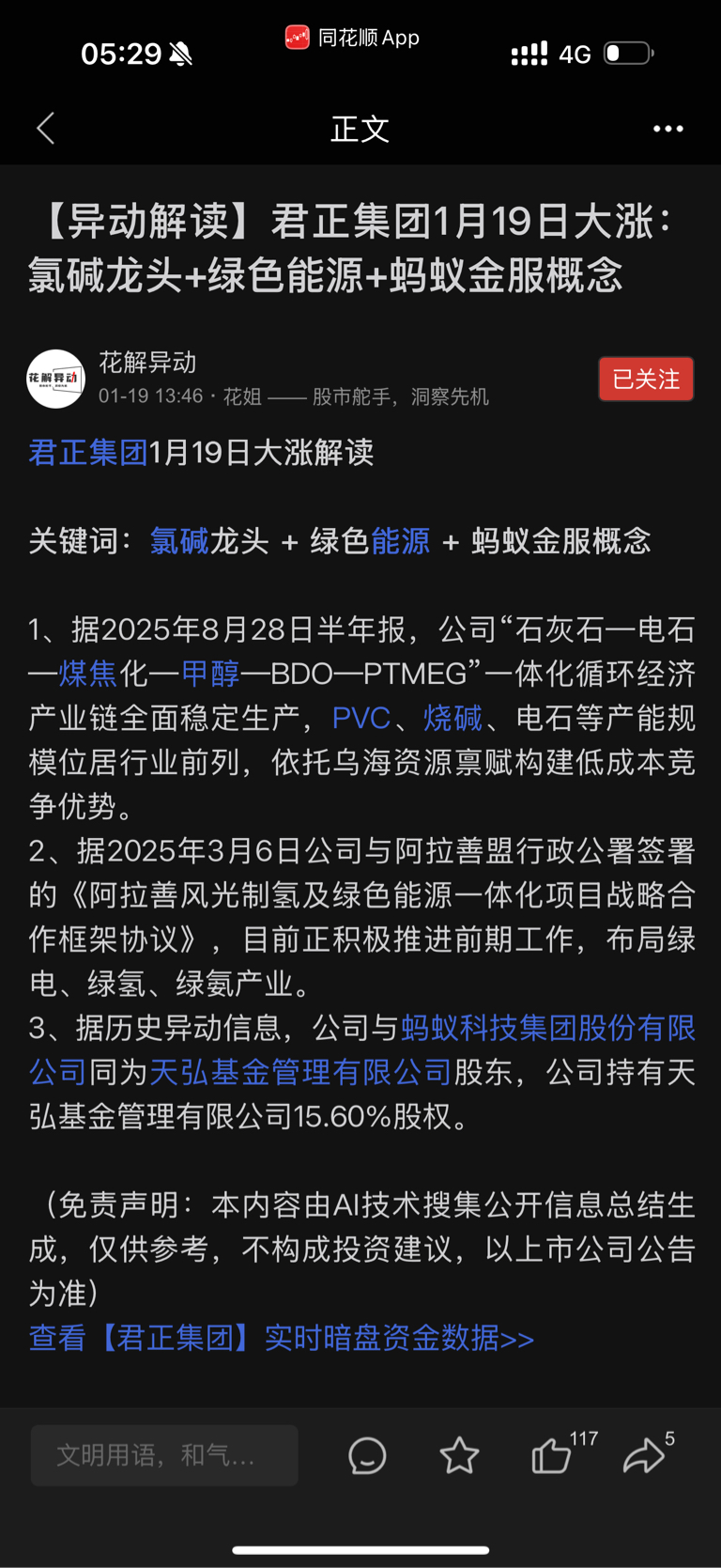 $君正集团(SH601216)$ 先跟化工涨一拔,再跟绿能涨一拔,最后马老师的蚂蚁迎来高光时刻,2026君正集团主升