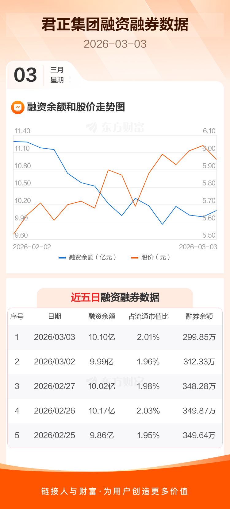 交易所最新数据显示,君正集团于2026年3月3日获融资买入1.17亿元,融资偿还1.07亿元,当日融资净买入1069.87万元。目前,该股融资余额10.10亿,占流通市值比例为2.01%。